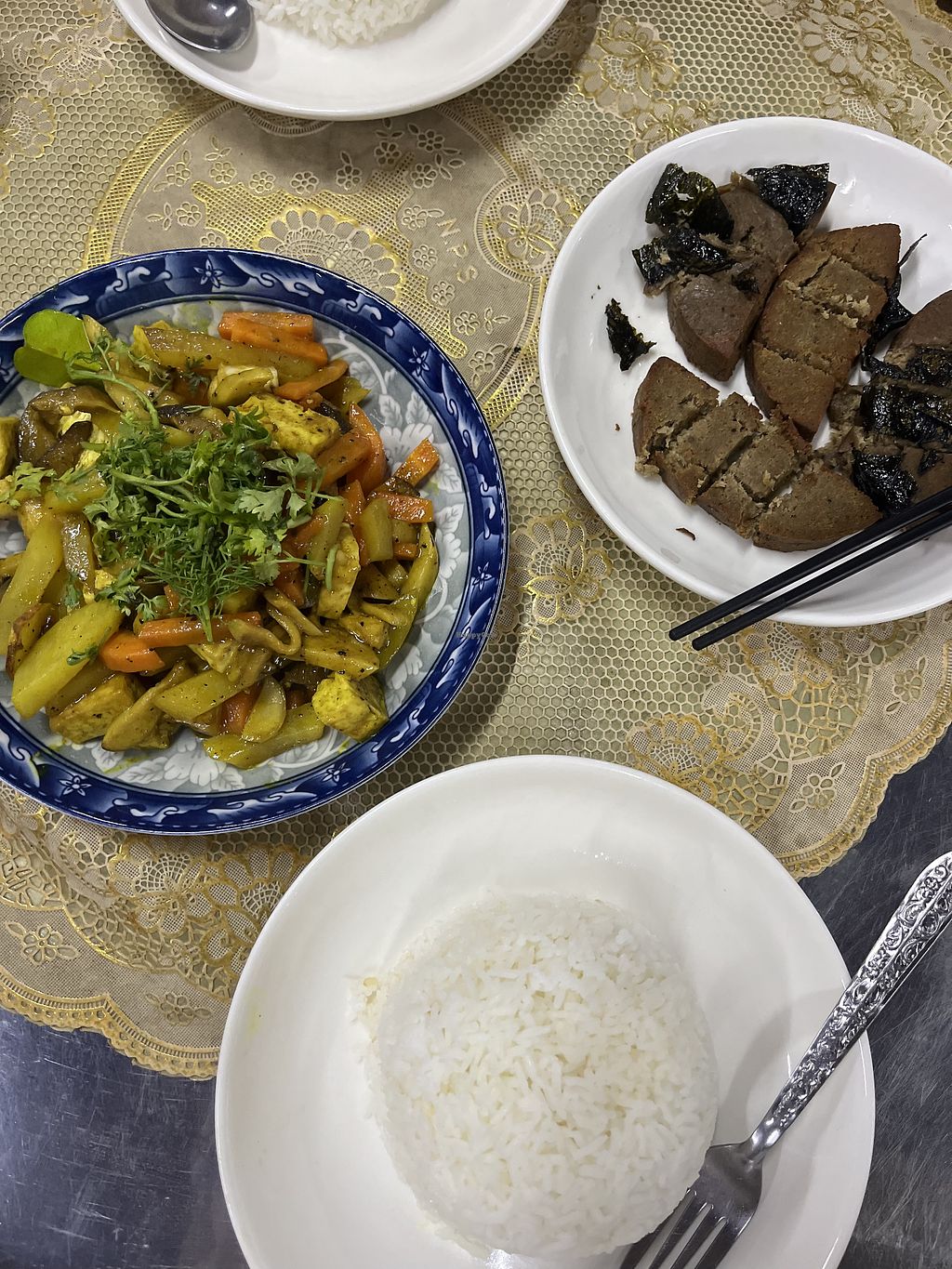 Hawaiian vegan cheese pizza with added tempeh, spinach and mushroom