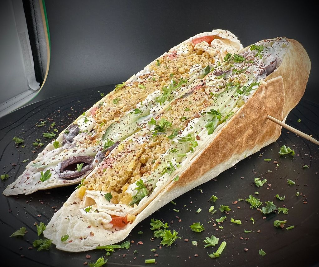 Vegan Falafel Tuna in a wrap.