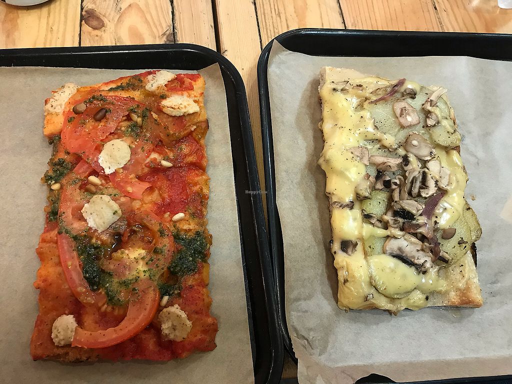 Tomato-ricotta and mushroom-potato slices. Perfect combination !