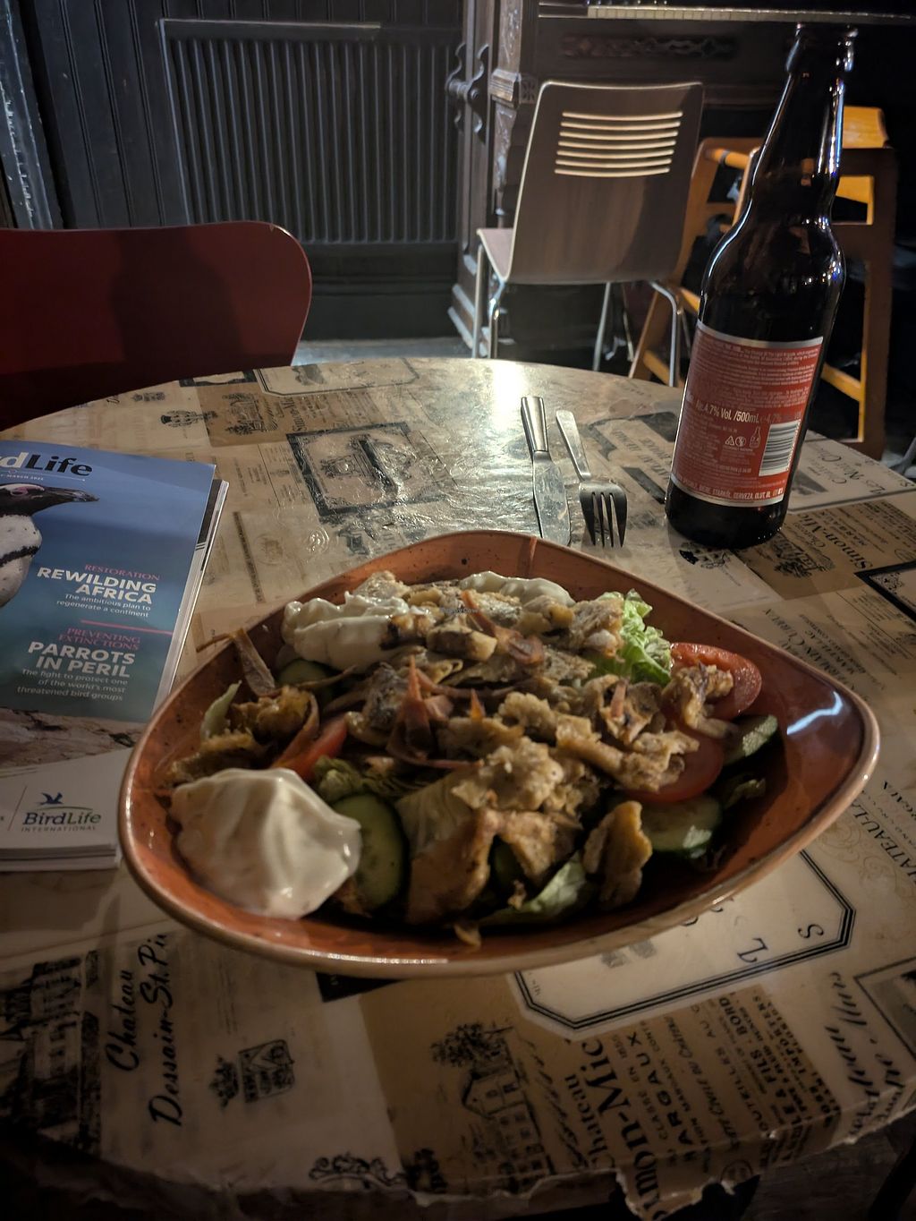 Fish and chips, chilli cheeze fries, Mexican chick’n wrap