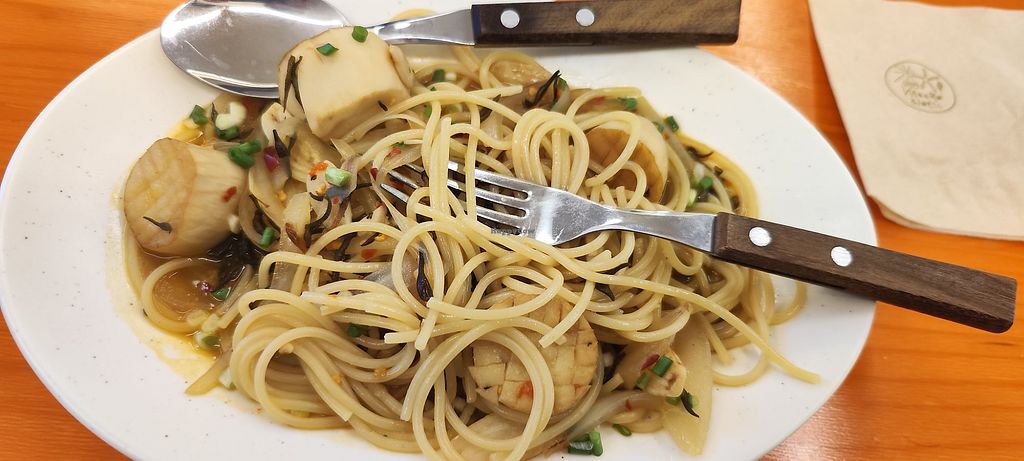 Read moreSecond dishes was the pasta with 3 mushrooms on top. The pasta (Spaghetti) wasn't well done cooked and a little bit hard and they swam in a tasteless soup. The service informed my, that they'll come a little bit spicy - not at all.