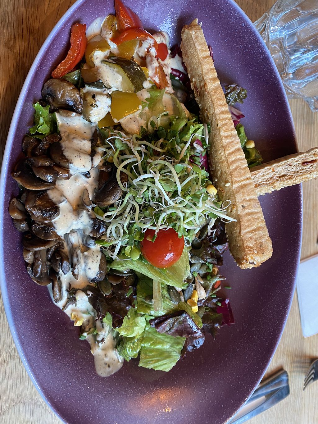 Burger, mixed salad, chips 😋