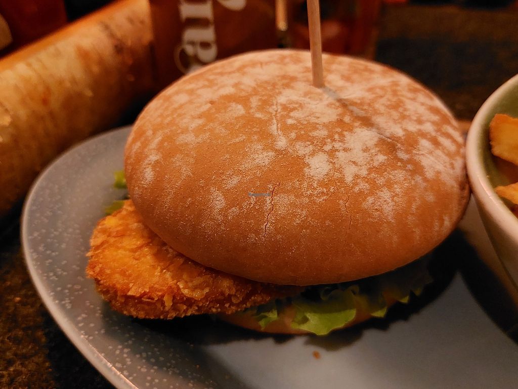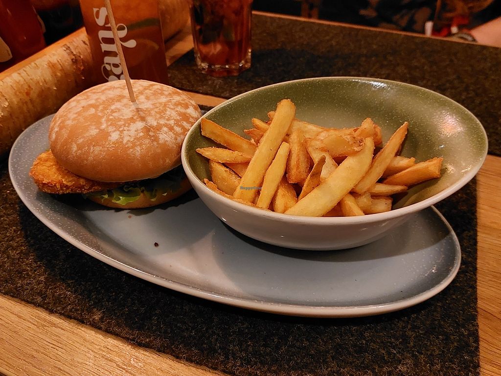 Zeitgeist burger (fake chicken) with fries