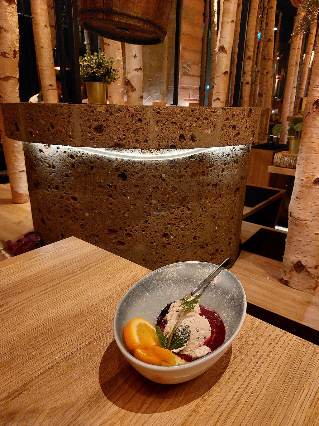 Cookie dough with berry sauce
