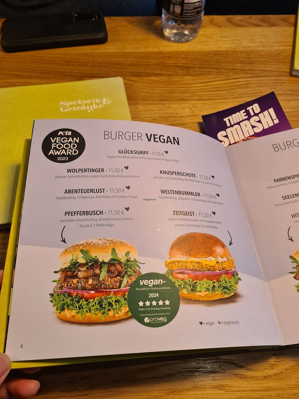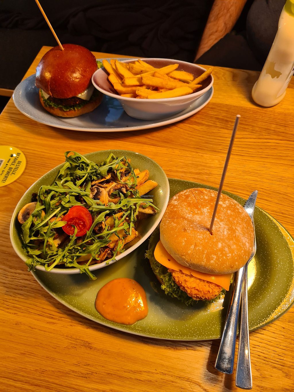 Es gibt verschiedene kreative vegane Burger, Pommes mit veganen Saucen und Nachspeisen! Die Kellner*innen sind sehr zuvorkommend und die Atmosphäre ist echt gemütlich und cool!