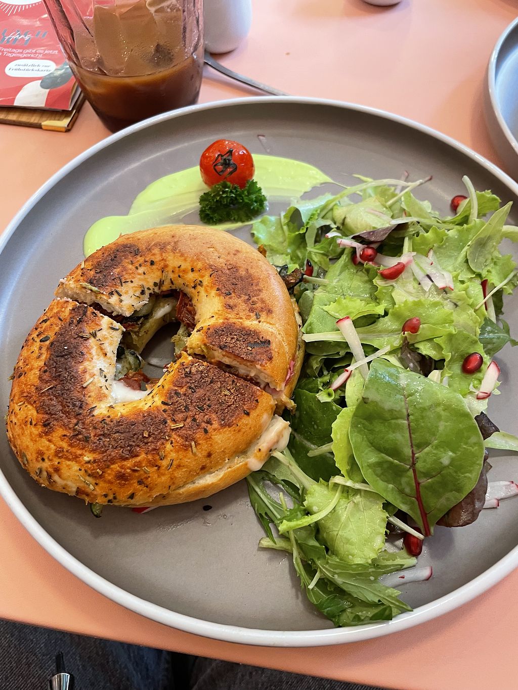 Since I am a pastel interior maniac, this place was the prettiest café I've ever seen, so stylish yet cozy and staff was super lovely and sweet as well. Prices might be on the more expensive side and portions on the smaller side, but the food was not only delicious but so gorgeous to look at. The flat white was amazing and oat milk is without extra charge. We tried the pistacchio raspberry cake and the 'Alles Roger', which was described to us as a huge Rocher, and both cakes sent us to heaven (the pistacchio one was only very slightly more delicious imo).