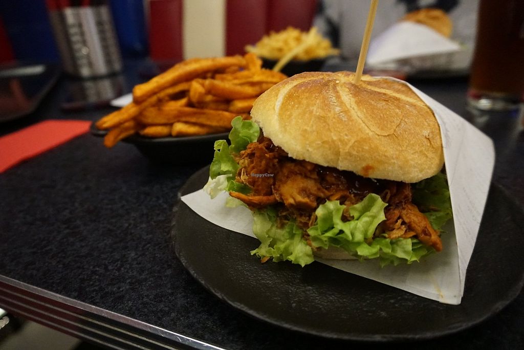 Vegan Pulled BBQ Burger mit Süßkartoffel-Pommes und veganer Mayonnaise…