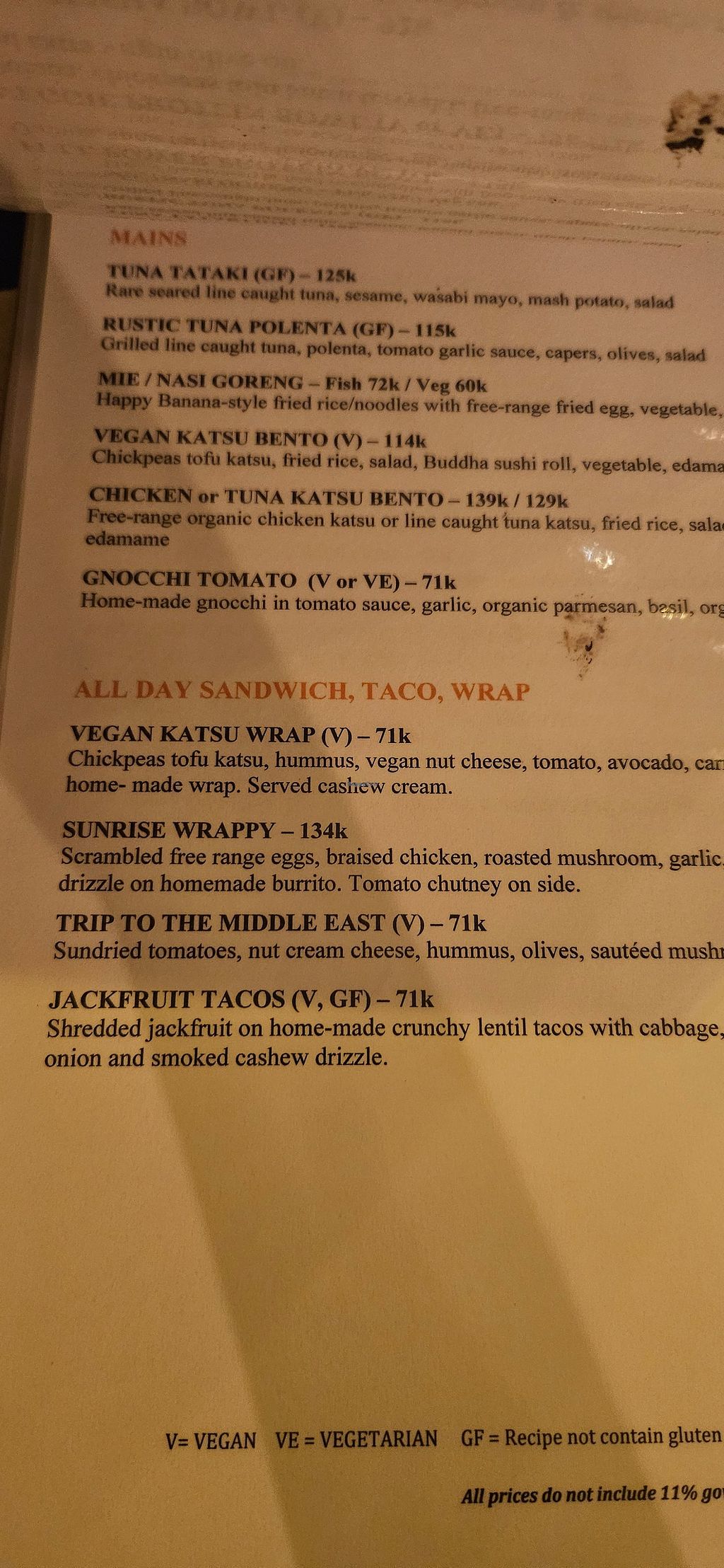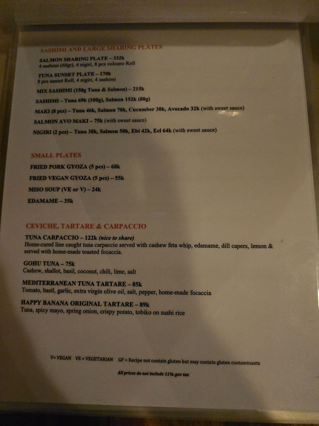 We had katsu vegan rolls and vegan tacos with jackfruit. Some other stuff in the menu. Seperate veggie/vegan menu.
