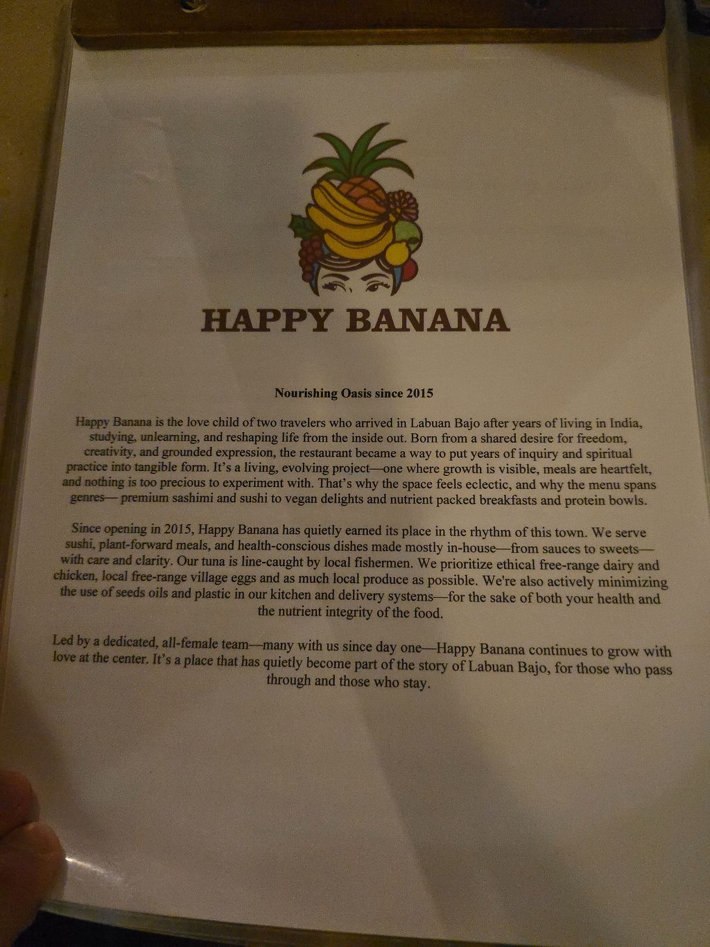 Happy Banana has a wide variety of vegan options available. We went with the Protein bowl and the Geisha bowl and both were delicious! The atmosphere is nice too. I'll definitely stop by Happy Banana if I'm in Labuan Bajo again!
