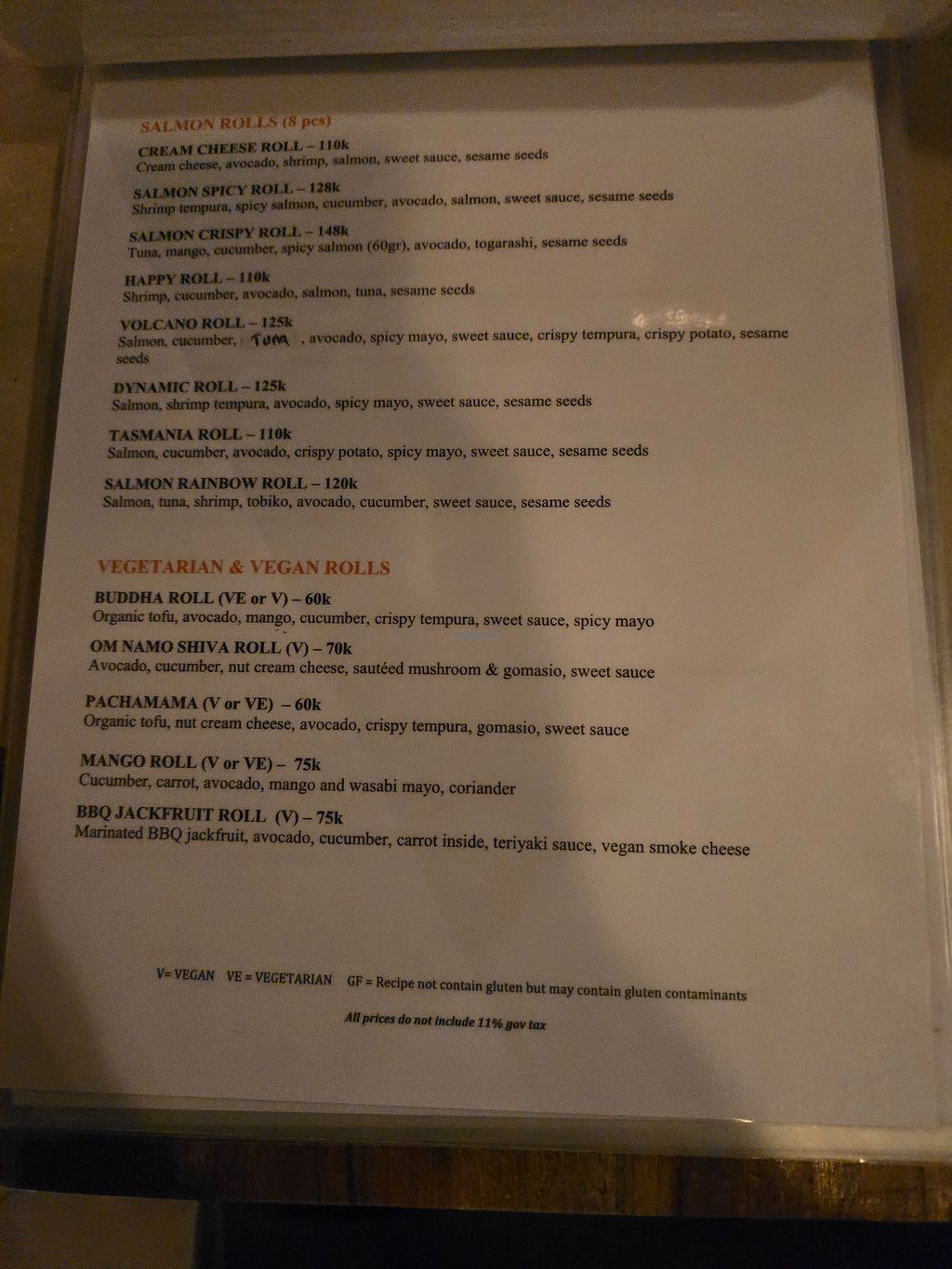 Value- Prices overall are very reasonable compared to US pricing for vegan sushi rolls