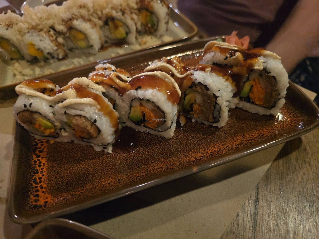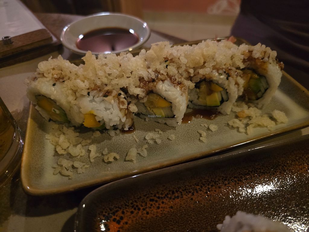 I ate dinner here twice and tried the vegan dragon sushi roll, which was delicious (just not a fan of mushroom). I also tried the vegan poke bowl, also nice. Overall good and nice vegan options.
