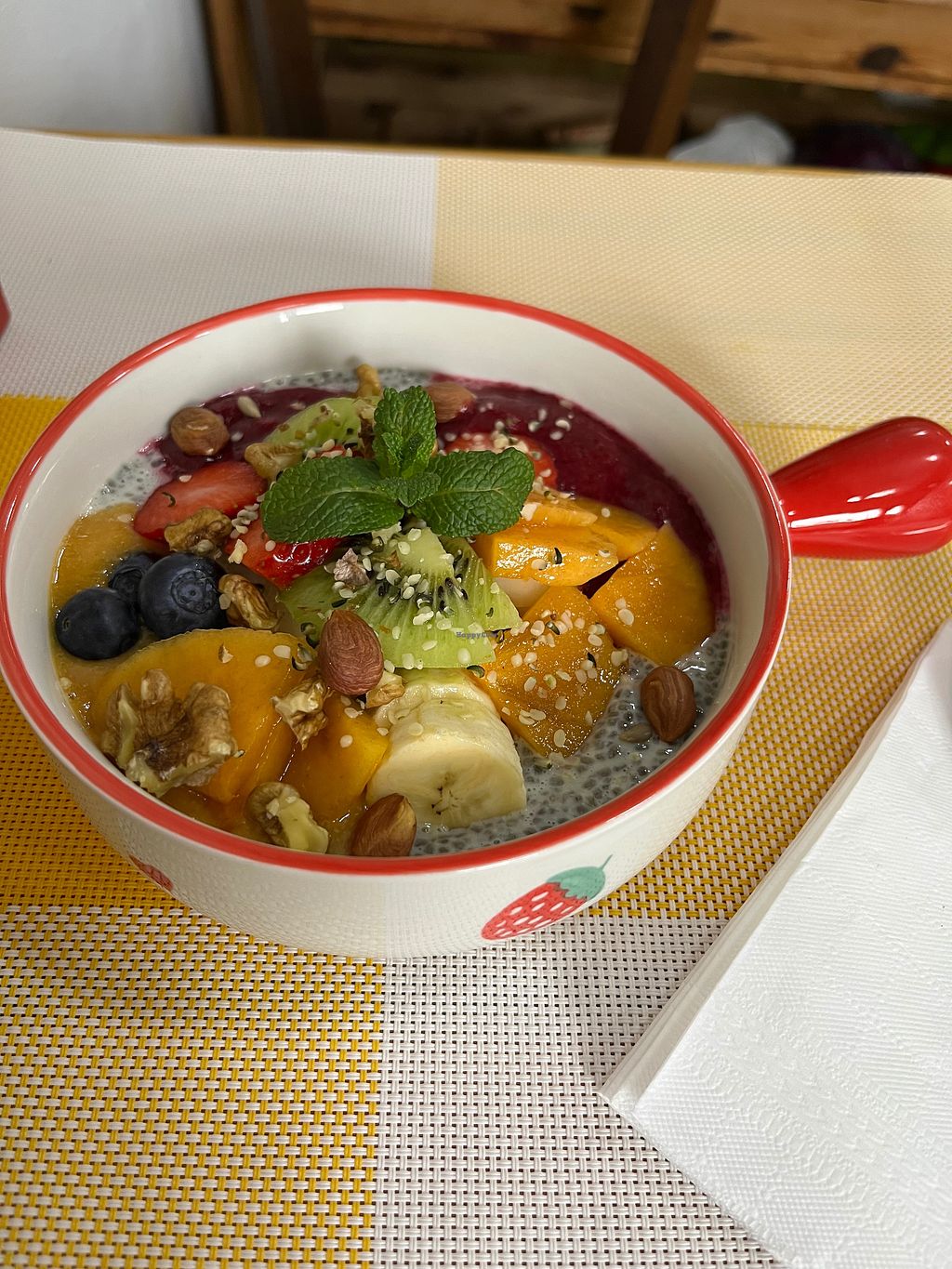 Scrumptious chia pudding full of fruit and gorgeously plated