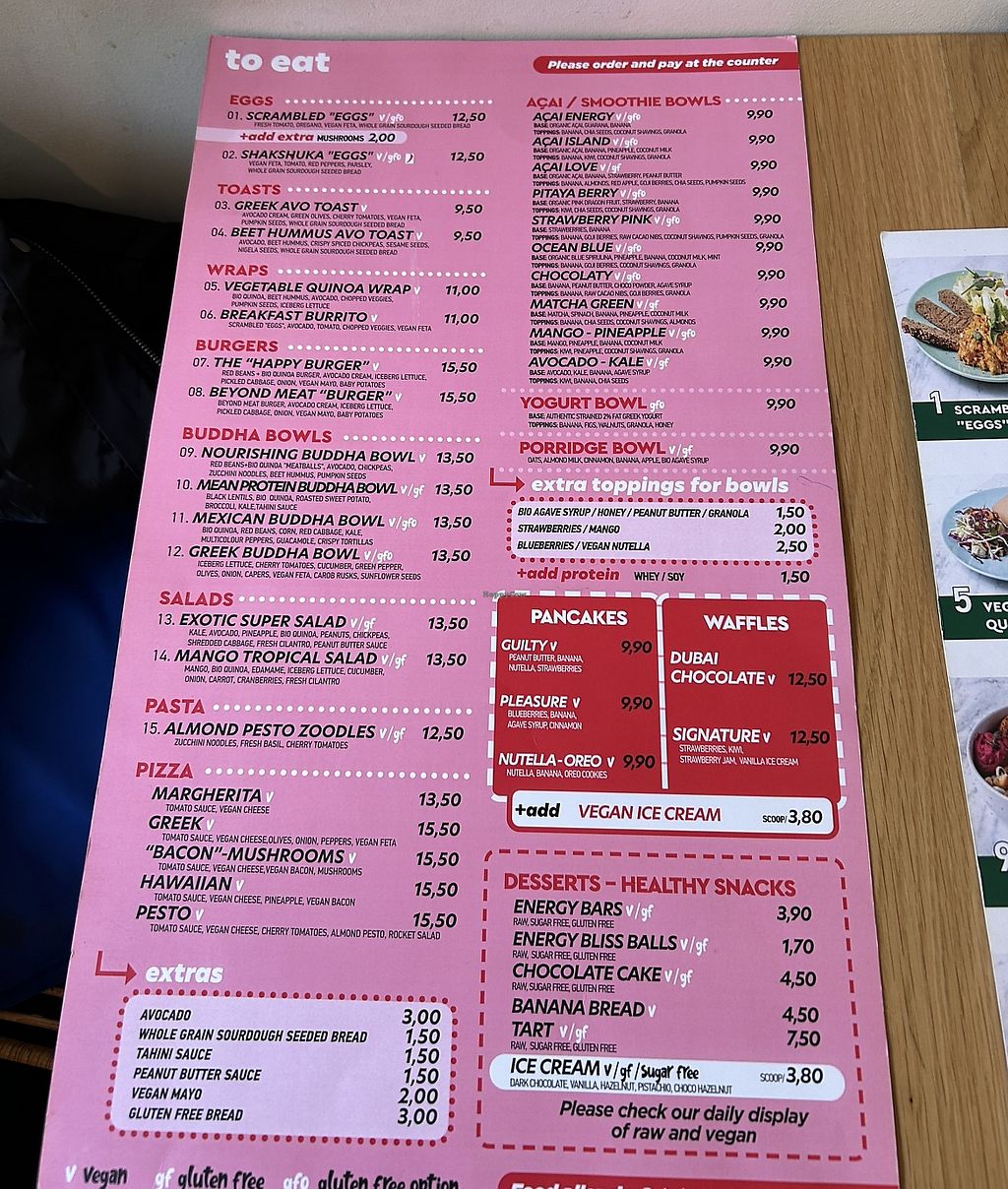 I was there for Breakfast and had a delicious Beet Hummus Avo Toast & a Pink Latte! It was so good, that I went there again and ordered for Dinner a Take Away Protein Bowl. The owner is very friendly and explained that they made all meals themselve! IT‘S A MUST TO GO THERE AND TAST IT OUT! FULLY VEGAN FOOD!!!!