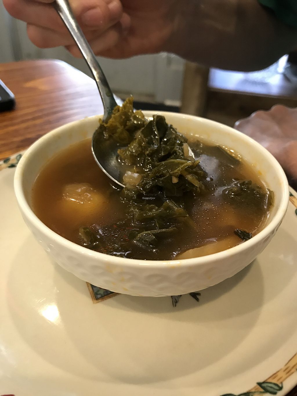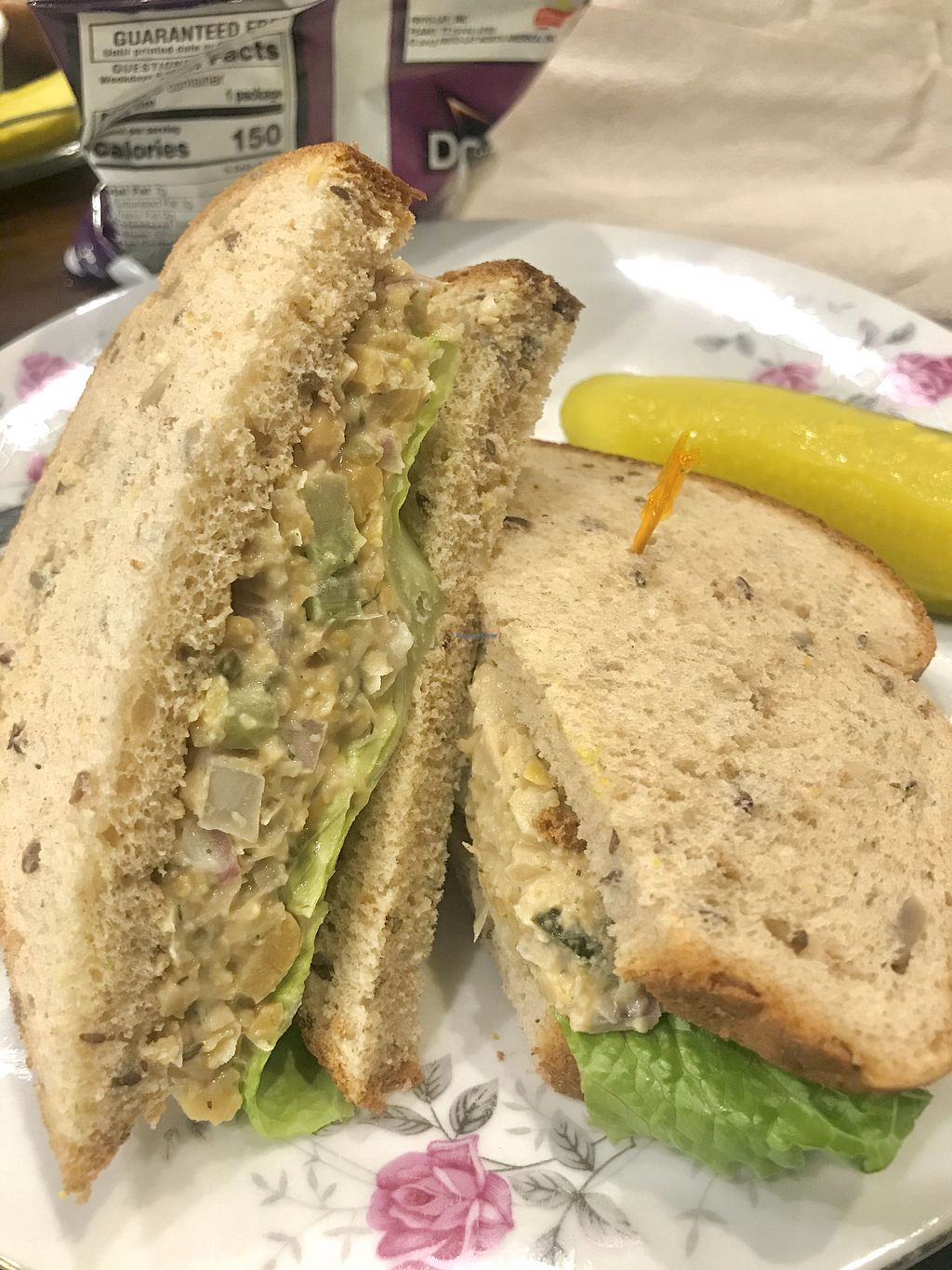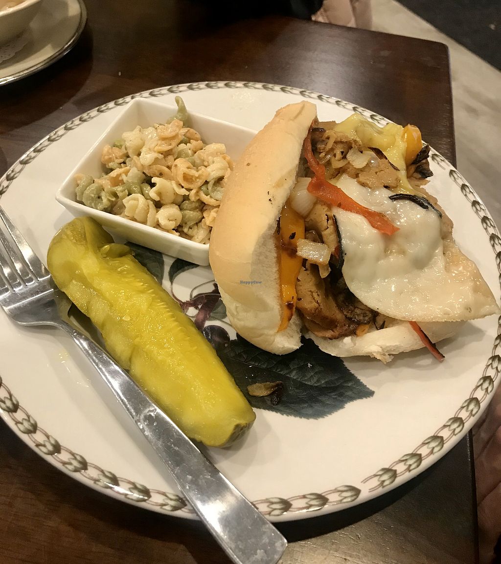 “Beef” (seitan) on pretzel bun with horseradish and pickle