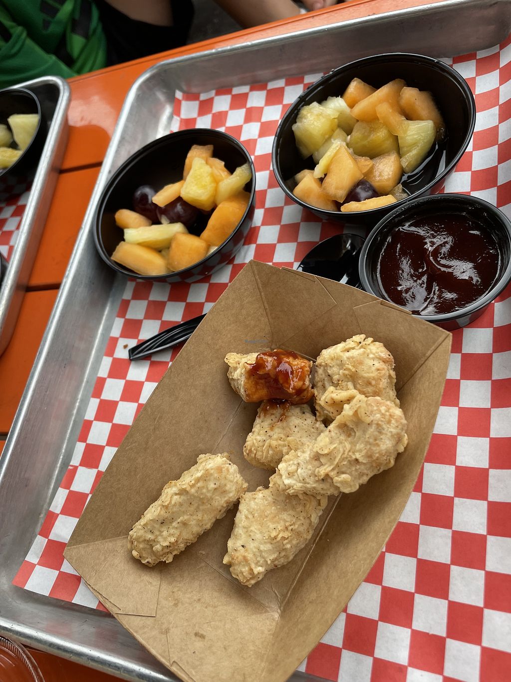 The fries are battered with egg so they aren’t vegan. They did let my kids have double fruit instead. The salad wasn’t bad but I wouldn’t go out of my way for this spot.