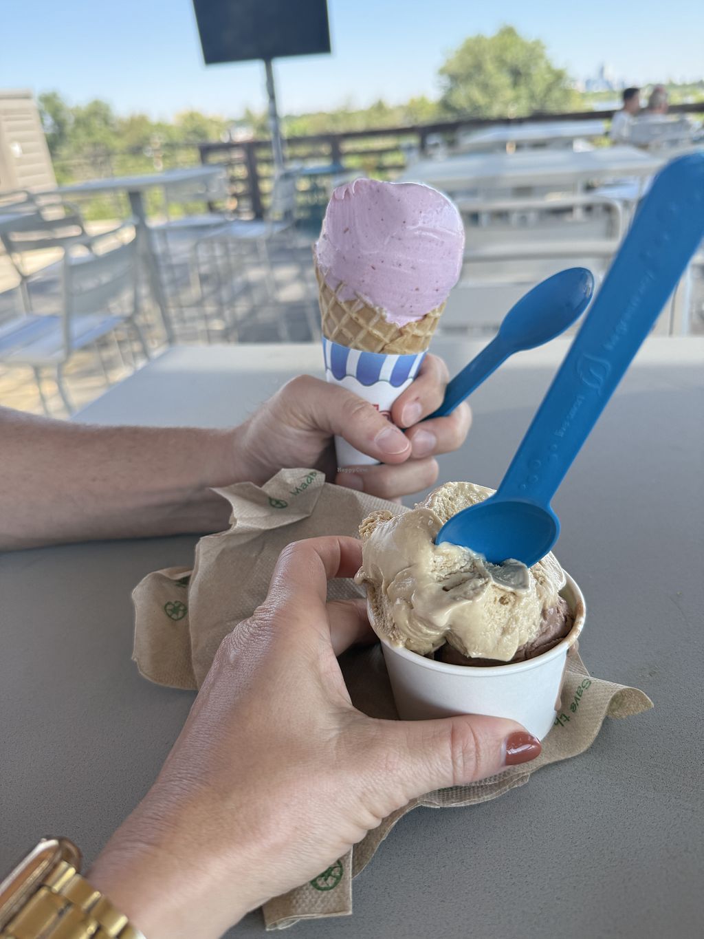 I had the coffee oat milk ice cream with “happy dust” on top and it was yummy. However I wish they had more vegan options, their regular salted caramel ice cream is to die for but not suitable for vegans. Still, I’m glad they have more than one vegan option.
