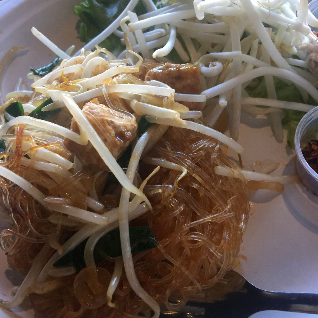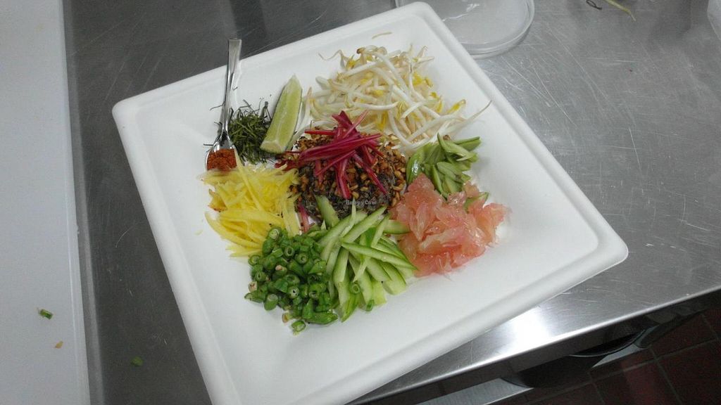 in this photo we have the sate, summer rolls, and the green energy rol…