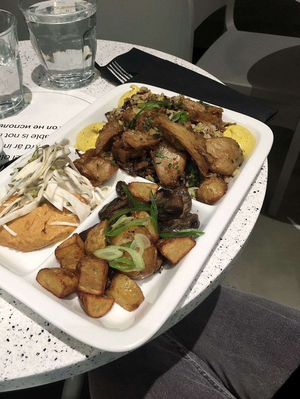 I got the 'make it yourself' tray with Vegan butcher meat, mixed cereals with herbs, mushroom and potato + zero waste side, hummus and seasonal pickled veggies. Quality of food is v good and I really liked it.