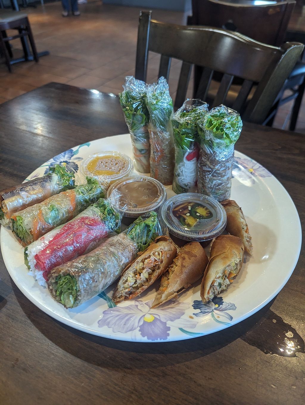 Spring Roll appetizer with peanut sauce.