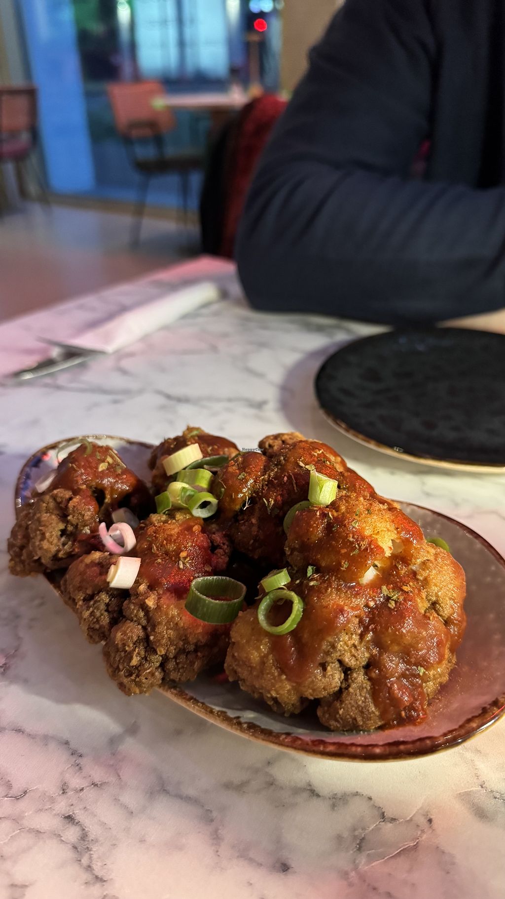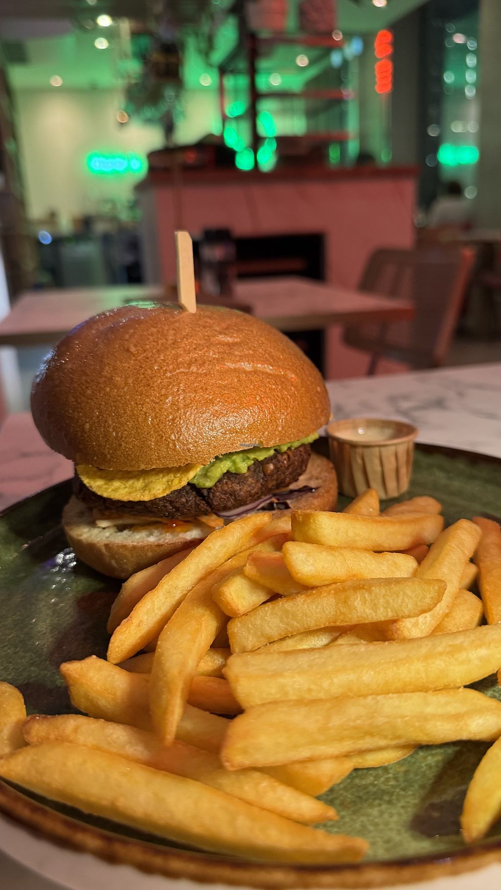 I went there with my little brother. he isn't much familiar with plantbased food, but he loved it. He had the tacos and nachos with an excellent cheese dip/gratin and I had some ocean-themed burger with these spirulina pattys 😋. Huge thing for 24€, can't complain. The quality and taste of food and cocktails were top notch the looks with my blue sauce on the burger even better, a really stylish place to go out and really nice waiters