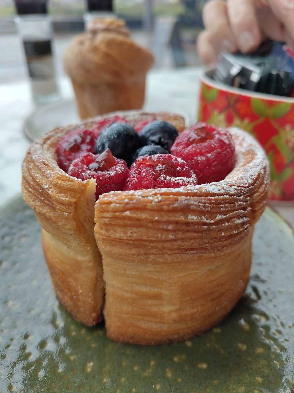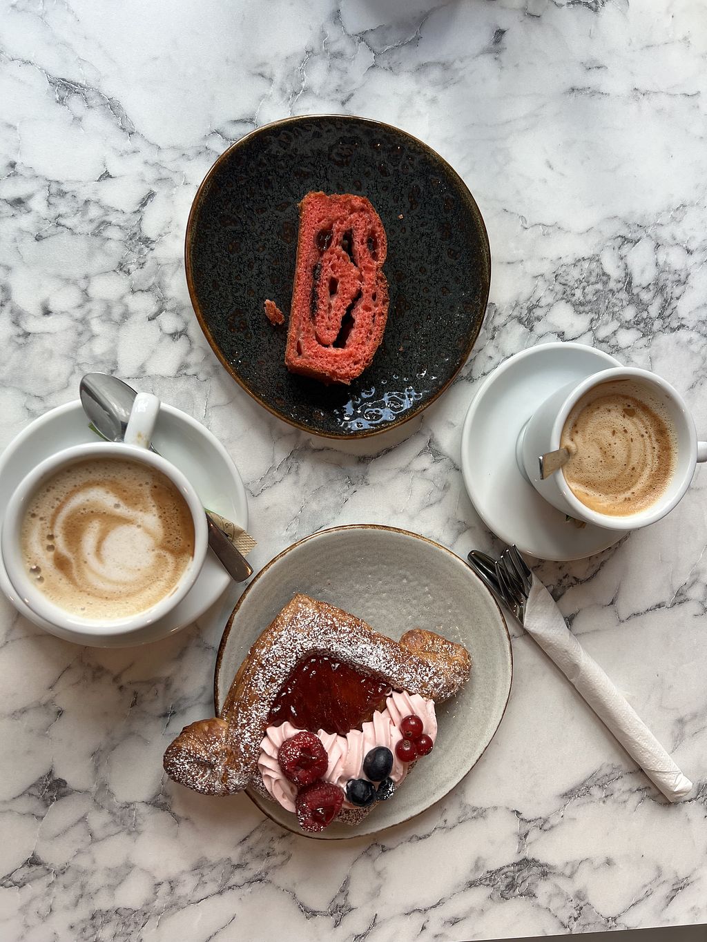 Ruime keuze lekkers. Wij konden niet kiezen en namen samen de hazelnoot cruffin en een roomgebakje om beide te kunnen proeven. En voor thuis of en kaas twister meegenomen. Alles super lekker. De beide gebakjes waren gul gevuld met de crème. Ook de koffie was verrukkelijk.