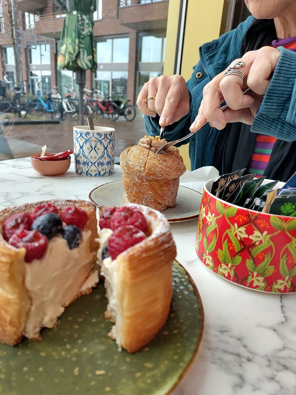 We hebben hier 2x heel lekker gelunched en 1x avondeten. Alles was heel lekker. De baksels (vegan croissants en gebak, 2 soorten tiramisu…) zijn al een lust voor het oog. Vanwege Valentijnsdag was alles extra mooi 😍 En super aardige bediening!