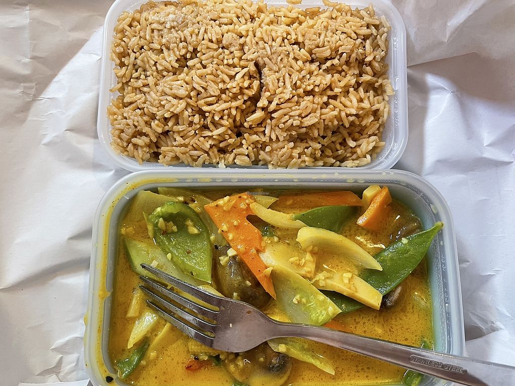 Happened to be in the area, where we took home two tofu curries, with rice, chips and crispy seaweed.