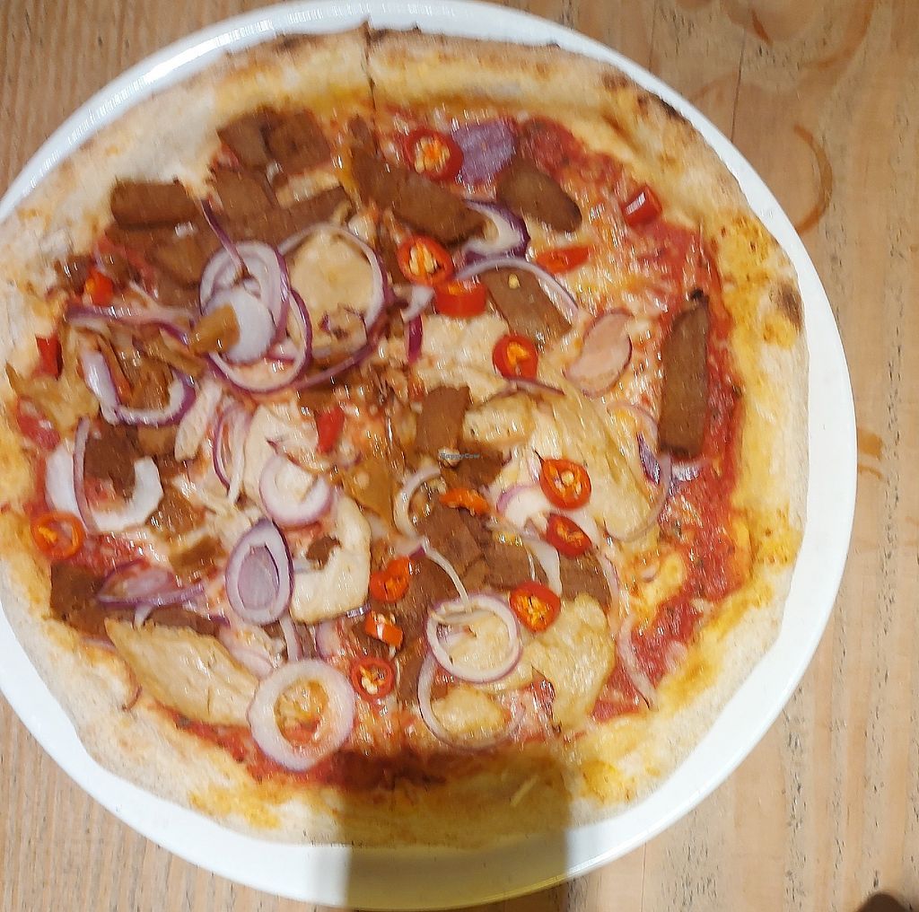 Goed gevulde pizza met een lekkere korst. Smaak is prima. Veel vegan opties