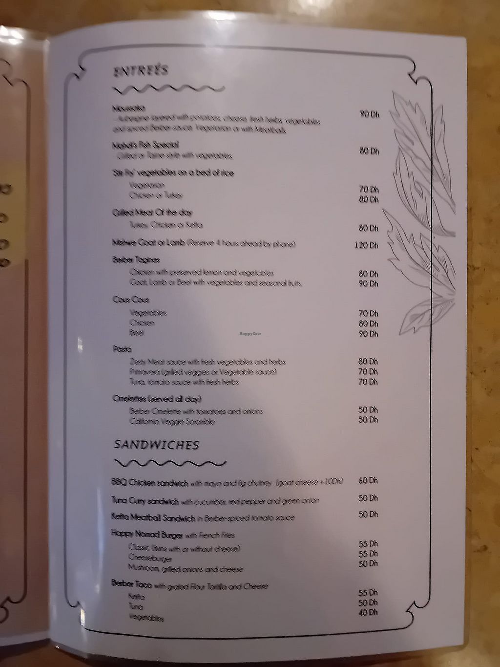 Serves meat, vegan options available. Restaurant offering a few vegetarian items that are or can be made vegan such as berber soup, salads, moussaka, tajine, couscous, pastas, berber burger and more. Open Mon-Sun 11:00am-10:00pm.