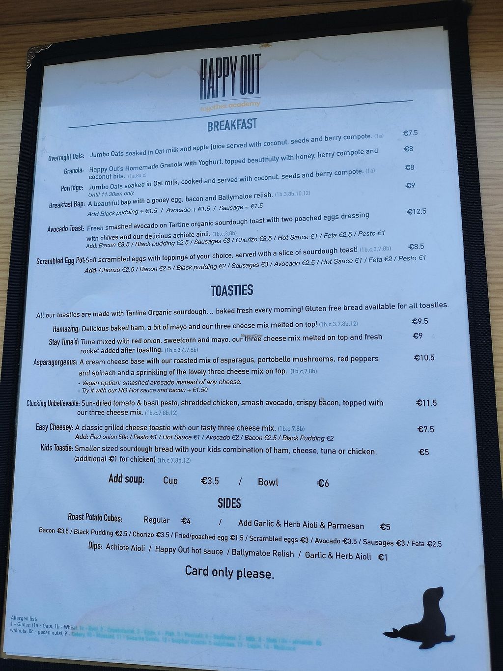 One of the Happy Out cafe locations operated in partnership with Together Academy, a social enterprise in Dublin that provides young adults with Down syndrome certified training, practical work experience, and employment opportunities. Vegan options include porridge, overnight oats, power balls, and plant-based milk for coffee. Open Mon 07:00-17:00, Tue-Sat 07:00-16:00, Sun 07:00-17:00. Closed for lunch for one hour Thursday -Saturday.