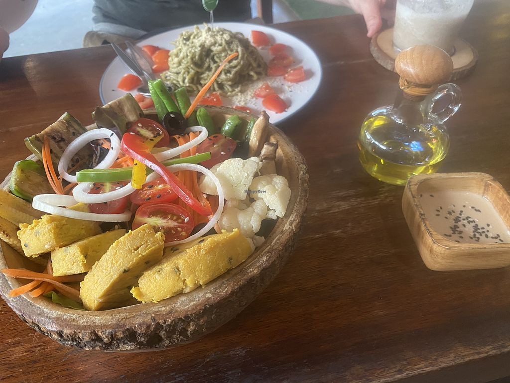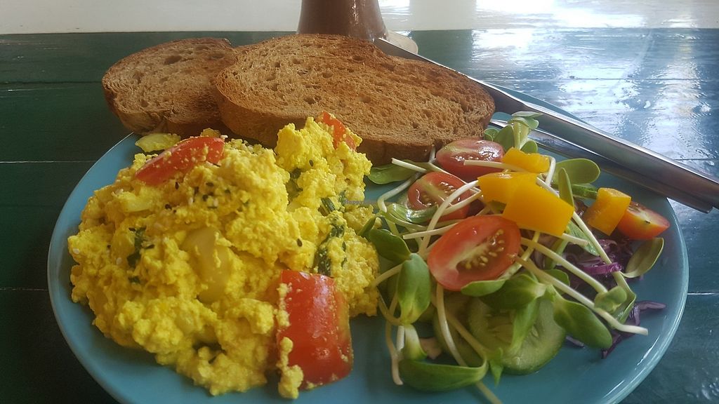 Most amazing tofu scrumble with onion, tomato and spinach. So So delicโฆ