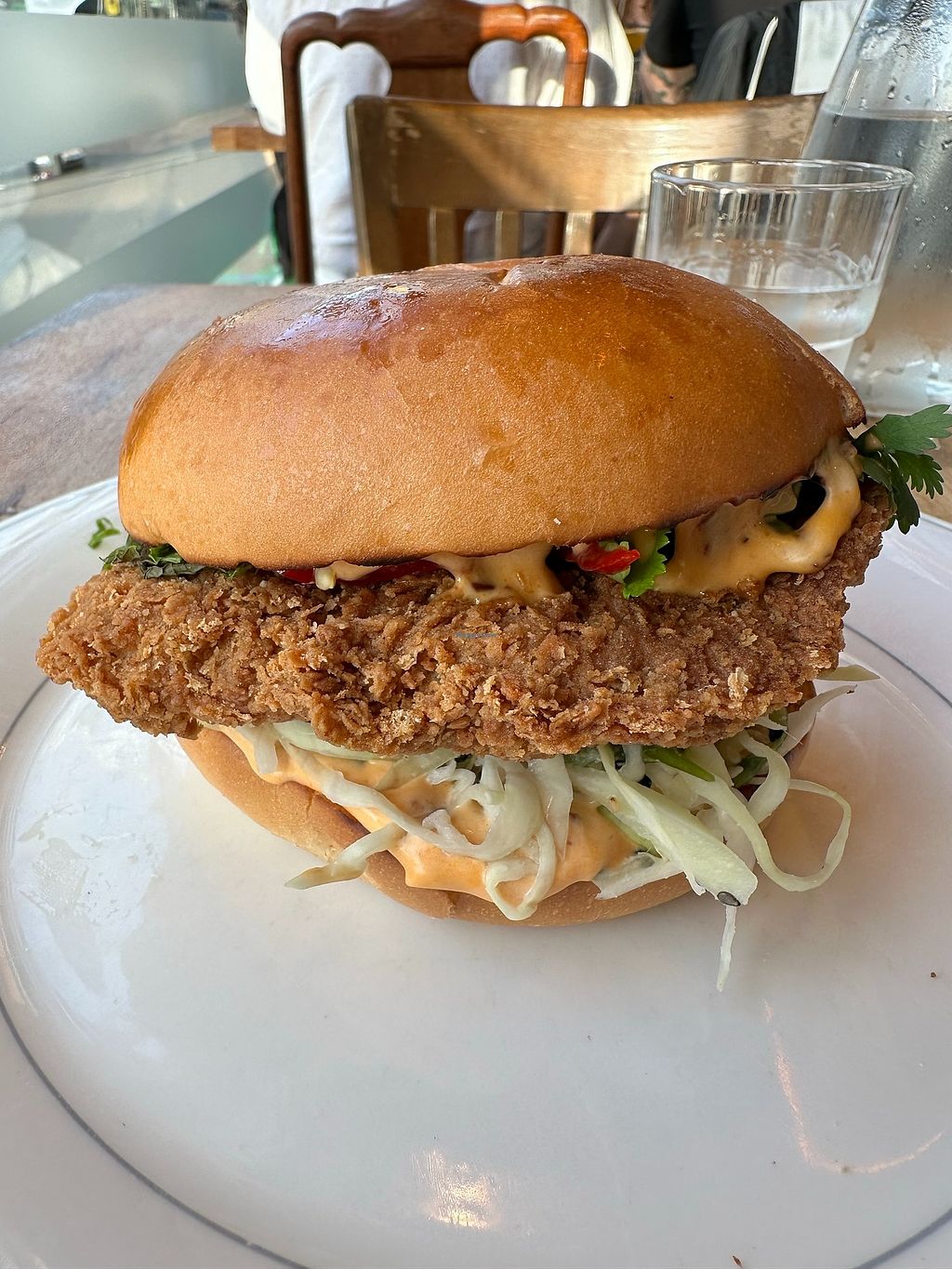 I got the saucy sesame burger with no coleslaw and it was the best vegan chicken burger I’ve tried to date, I think it was seitan and it wasn’t dry, the sauces and breading they used really brought the burger to life. I went with my parents who aren’t vegan and they loved the food too, highly recommend for anyone passing through!