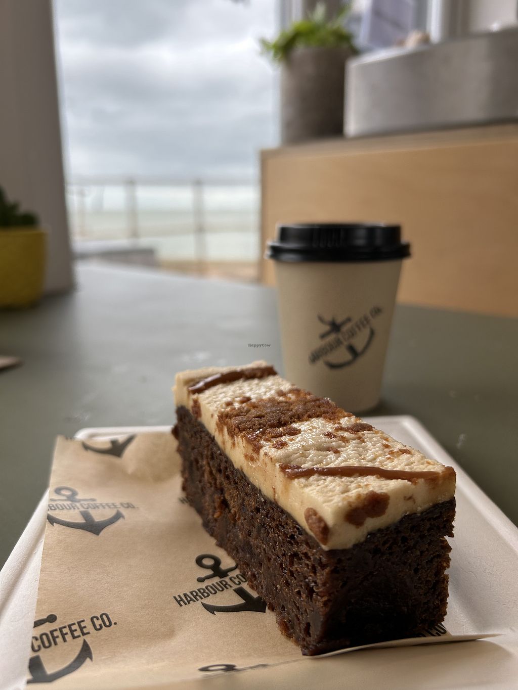 Right by the harbour arm, we enjoyed a vegan cinnamon bun and carrot cake, with an oat milk chai latte. Young lady serving us said she had the HappyCow app; when I suggested they claim their listing :-)