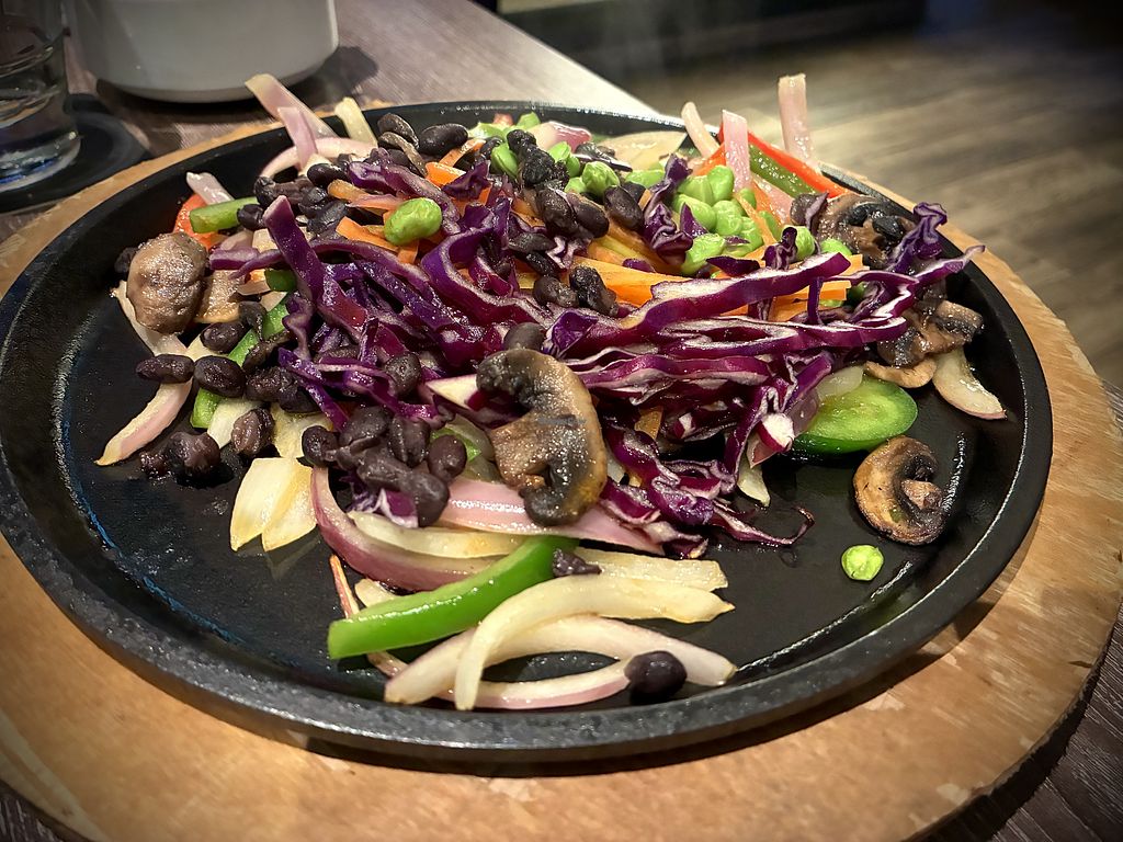 Veggie Fajitas served with extra guacamole. The grated cheese and sour…