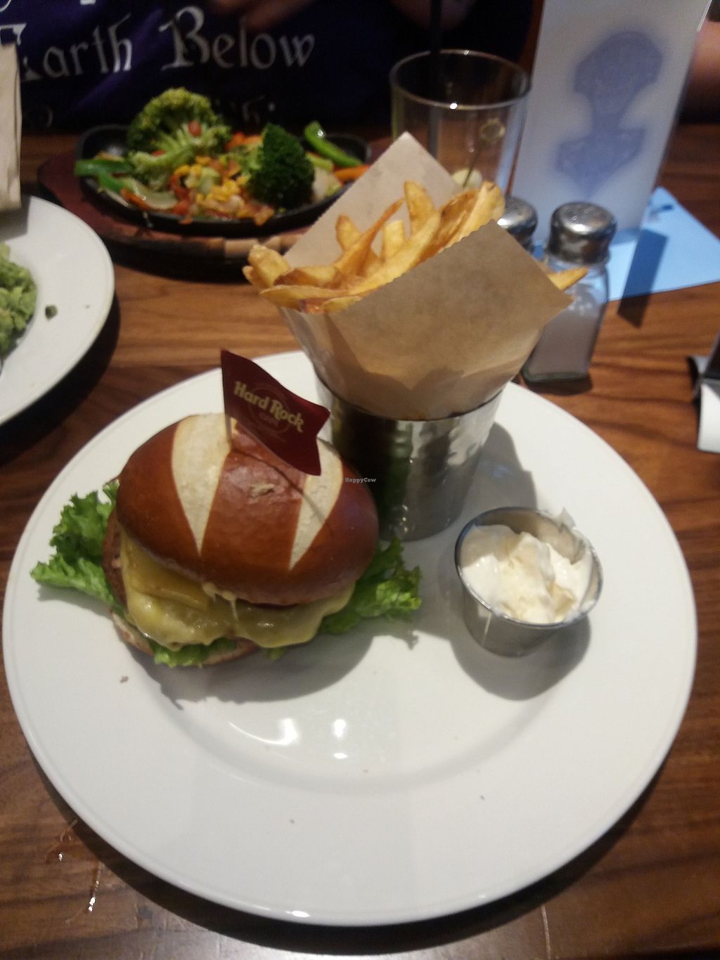 Serves meat, vegan options available. International hospitality group operating restaurants, hotels, and casinos. Founded 1971 with the opening of its first restaurant in London. Serves primarily American and western-style food. A vegetarian/vegan menu lists burgers, wraps, Mexican dishes, fries, sides, and salads. Rock n roll themed with music memorabilia for decor. Selection may vary by location. This location has a separate vegan menu with three starters, six mains and three desserts. Reported closed March 2025.