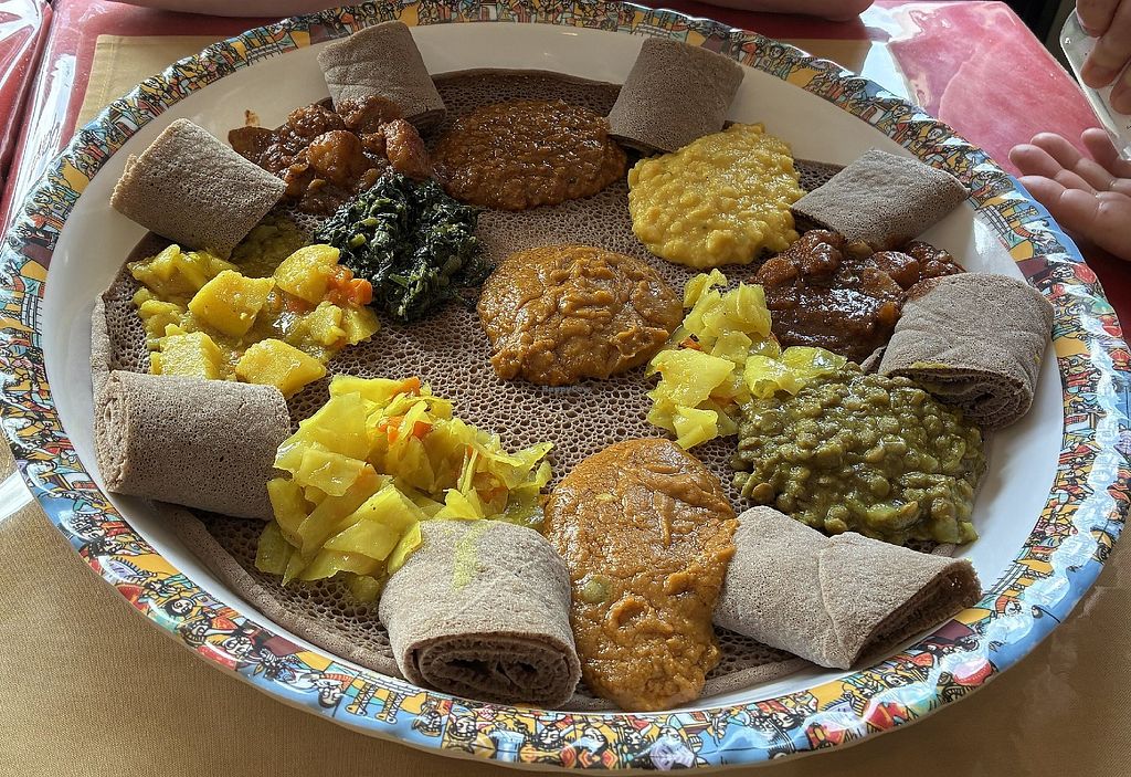 sampling of the vegan buffet - injera is gluten free!