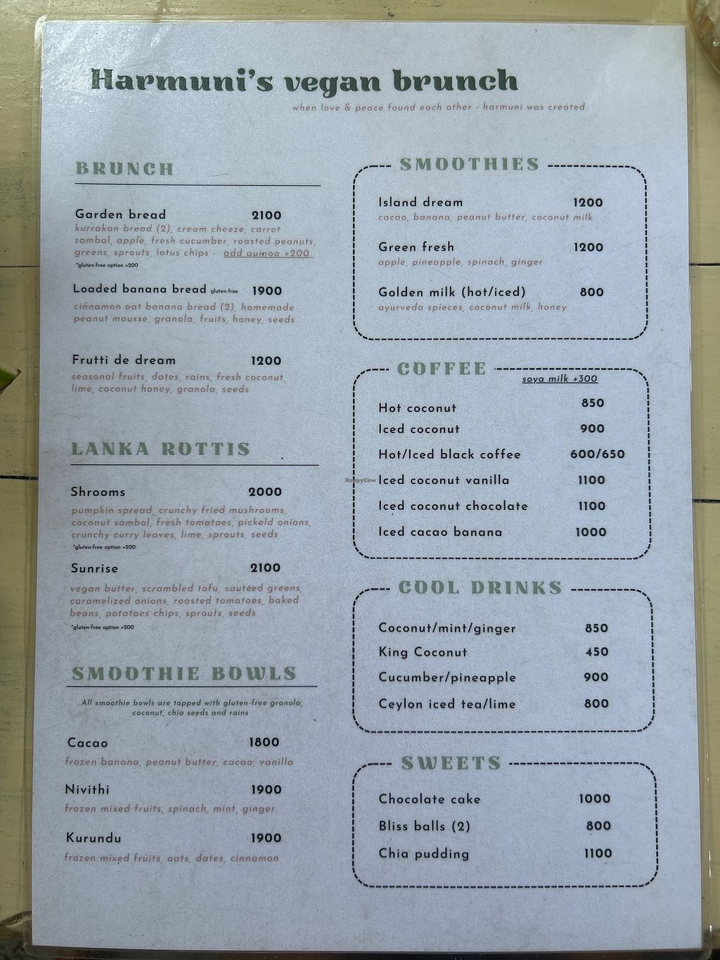 Menu and atmosphere