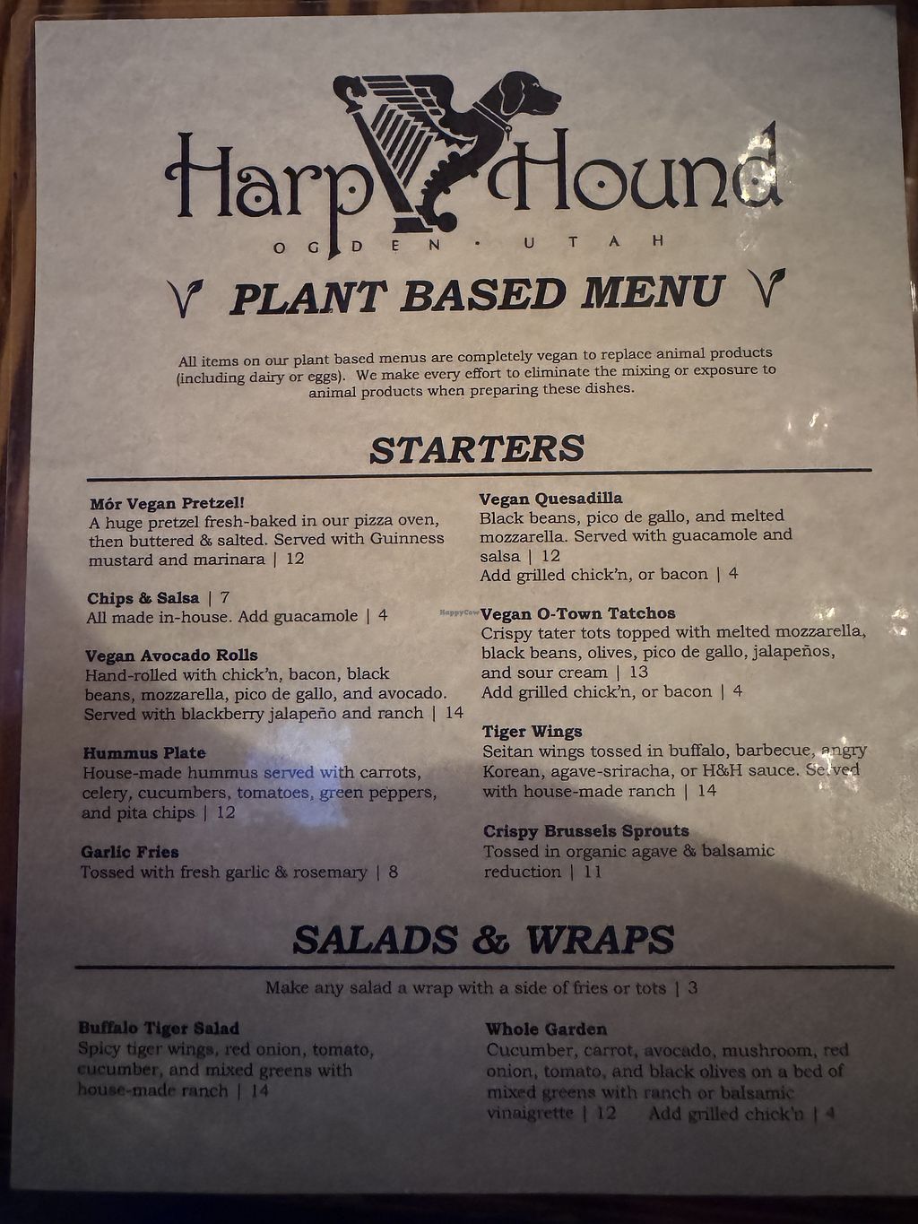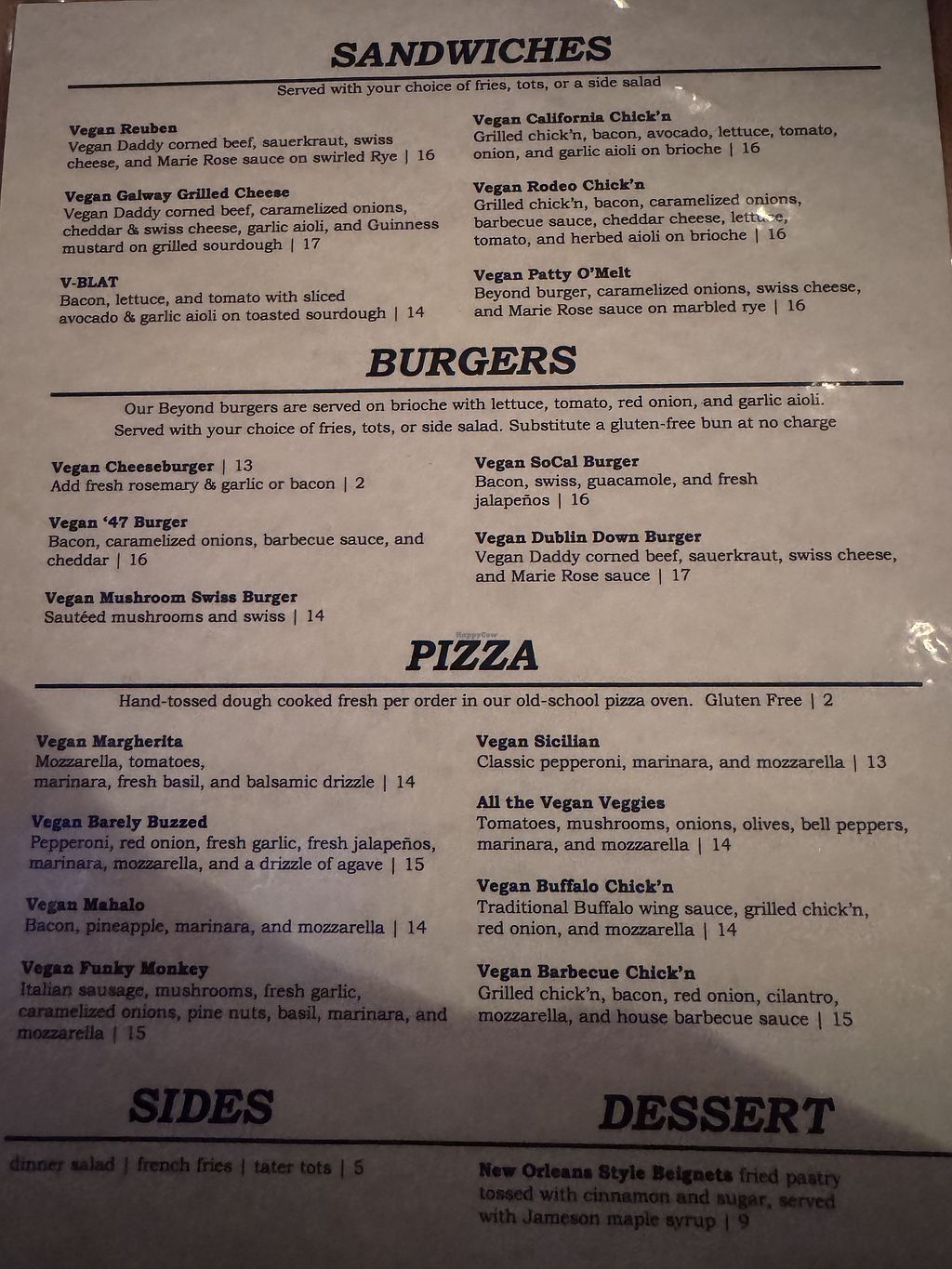 Vegan menu (back)