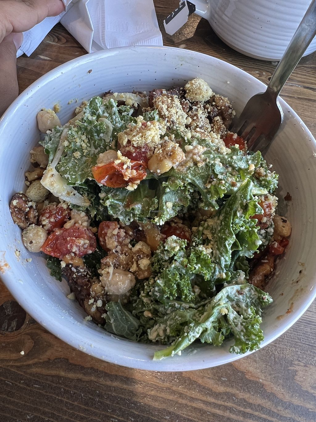Really enjoyed my 1/2 Caesar salad & pizza. Came after a big breakfast brunch so they were unfortunately sold out of a lot of items. Cute place with many vegan options. Tasty and fresh!