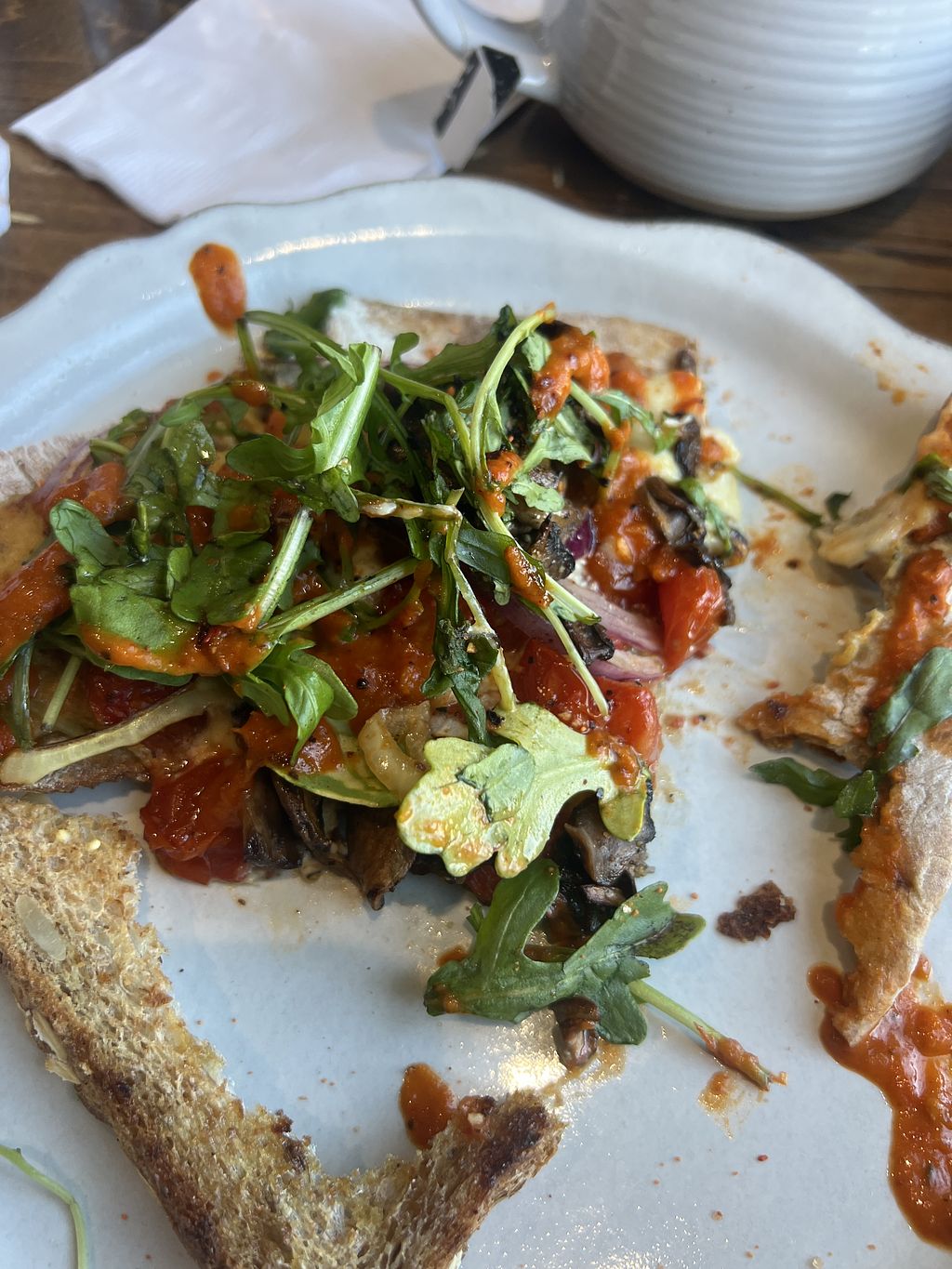 I love the variety of vegan options on the menu. I wanted the avocado toast, but it comes with scrambled eggs, however, they substitute it with tofu scramble.