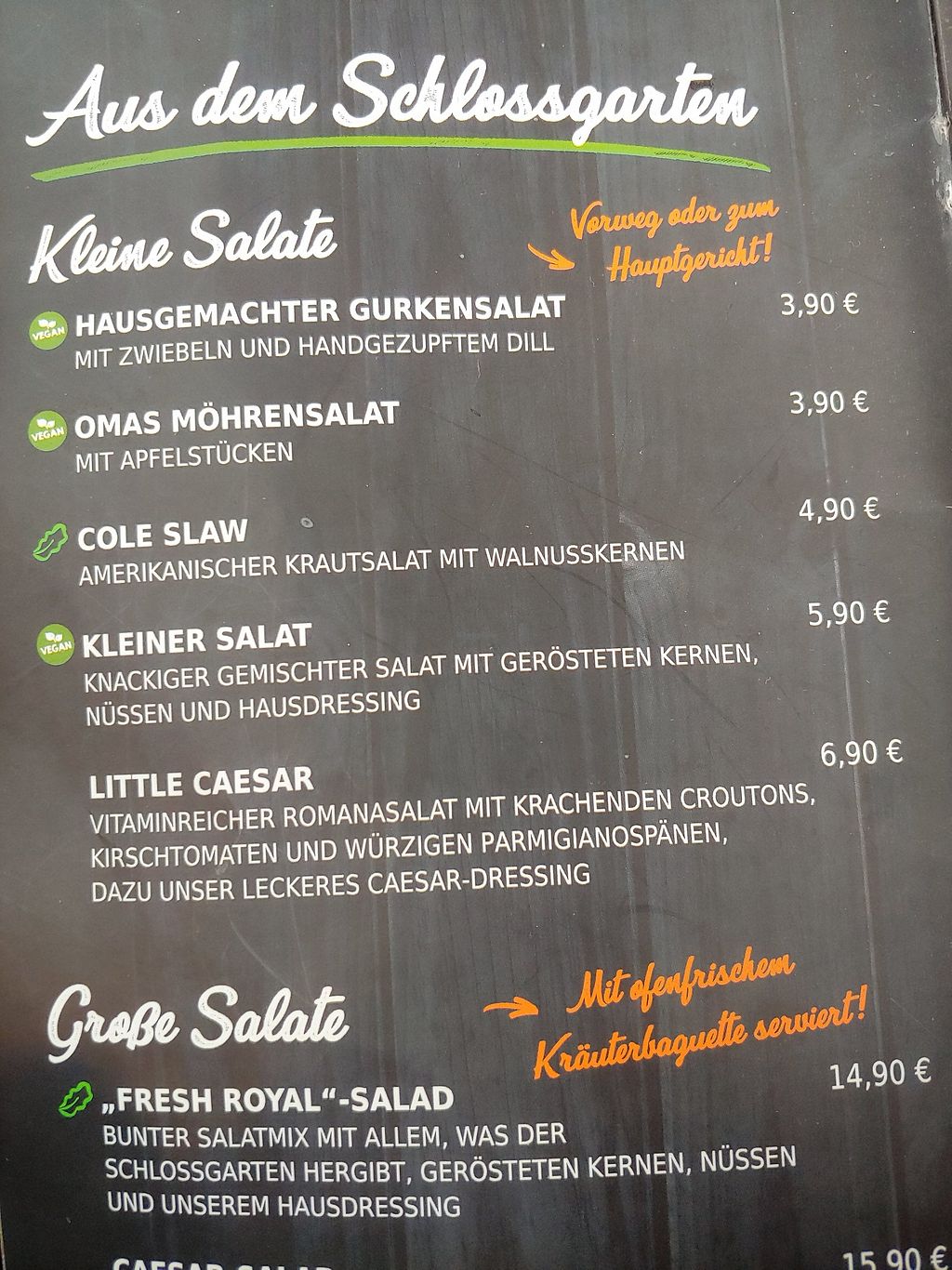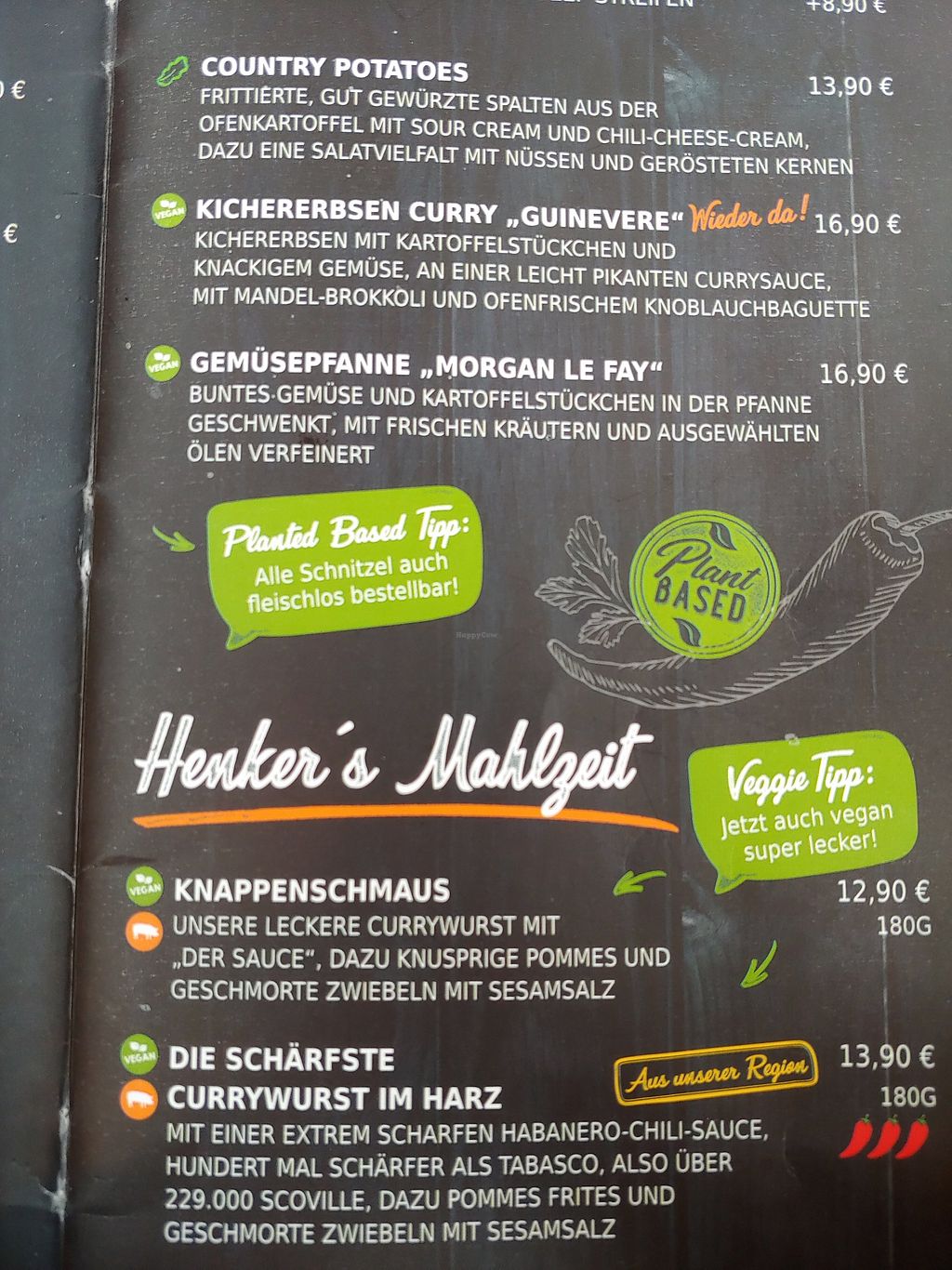 The menu states that all schnitzels are also available vegan. That's not true. Only the schnitzels can be ordered vegan, where the sauce is vegan anyway.