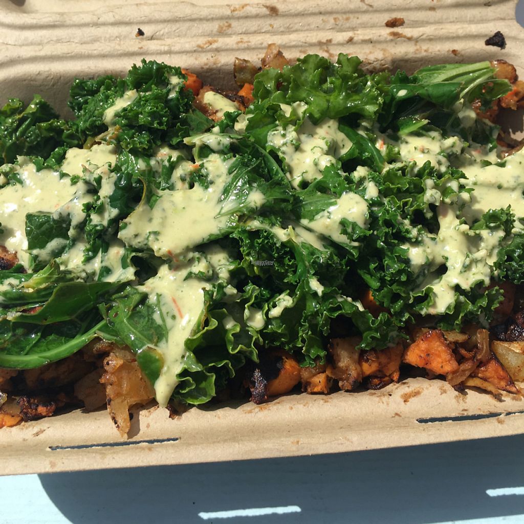 Serves meat, vegan options available. Food cart making breakfast hash-based dishes. Offers "the vegan" as an option and also has vegan sausage, a vegan sandwich with avocado and salad, and house-made vegan cheese sauce. Local kombucha. Previously at Mississippi Market Place and Killingsworth Station Food Cart Square. Reported closed June 2020.