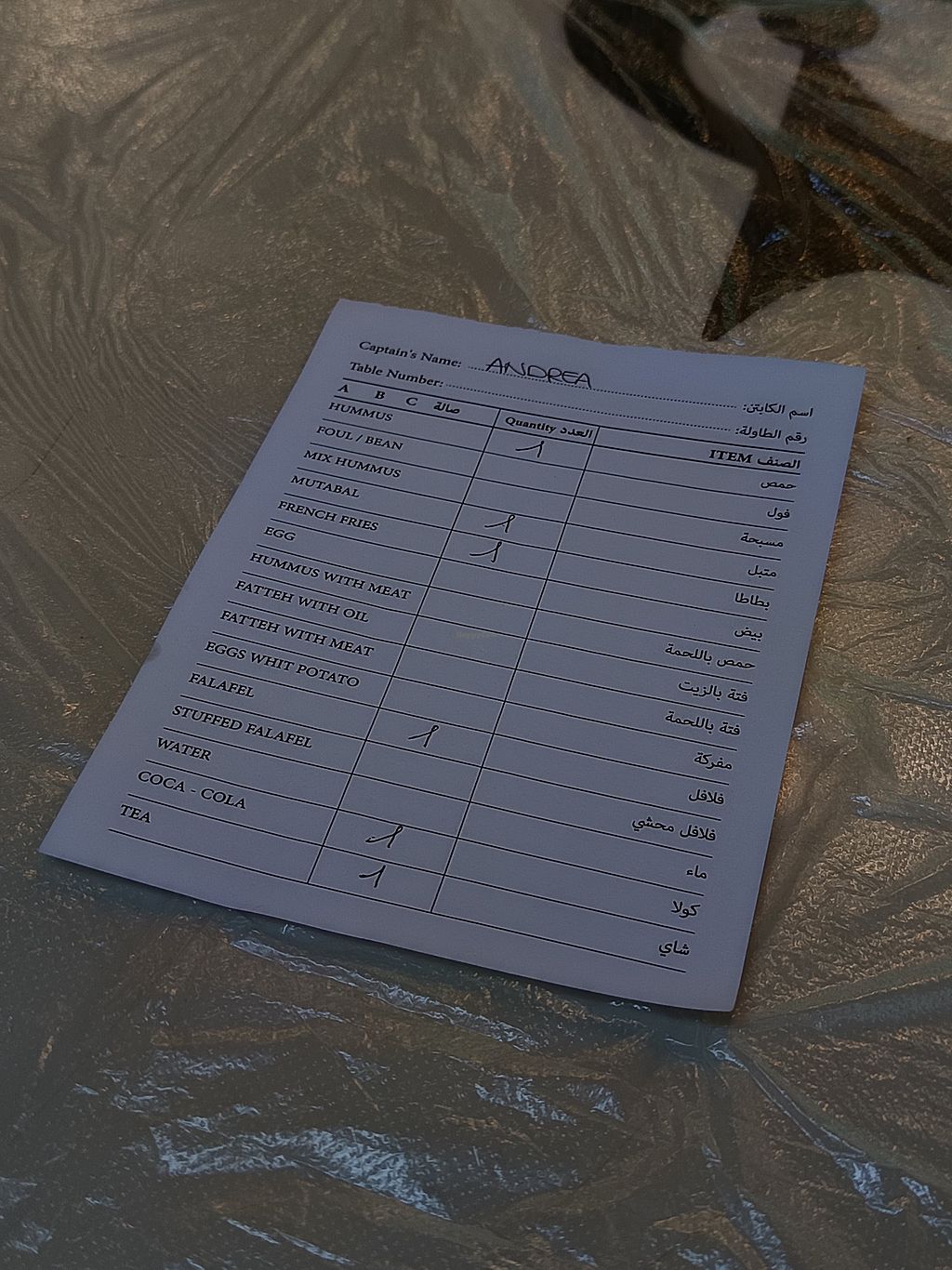 We’ve eaten here the last two nights and loved it. Absolutely wonderful. Delicious hummus, fuul, falafel and tea. They have a tick list paper menu in English/Arabic.