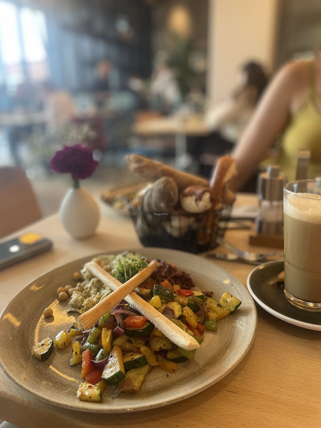 I really love the vegan hummus breakfast. You can order any coffee with milk alternatives or without caffeine without extra charge. They use regional suppliers when possible and the staff is also very friendly. Just make sure to book a table as they're usually very busy.