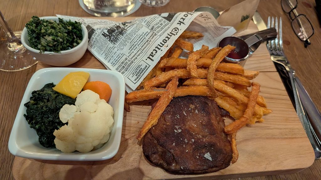 ordered the grilled planted steak and the plate was 80% fries plus the steak itself was too salty and dry, tried some of the dishes my family ordered and they were good but still left disappointed after paying so much for it (though I guess that's a normal price in the city)