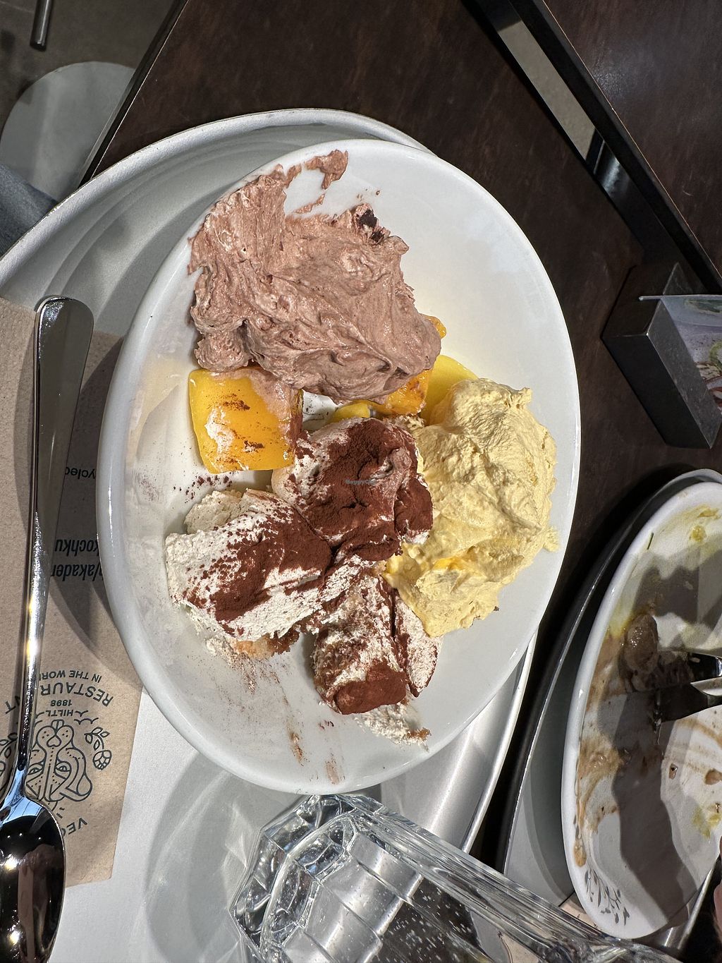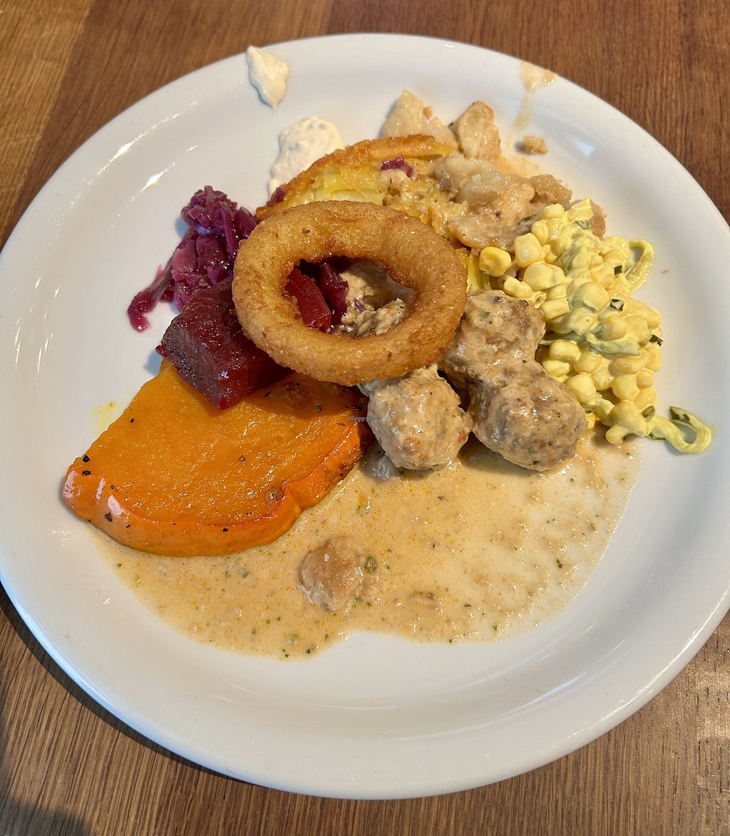 Every dish selected (except the rösti oddly enough) was flavourful and yummy. The best dishes imo were the Asian ones. The cream in the vegan dessert lacked flavor too, but overall, the food was pretty high quality for a buffet.