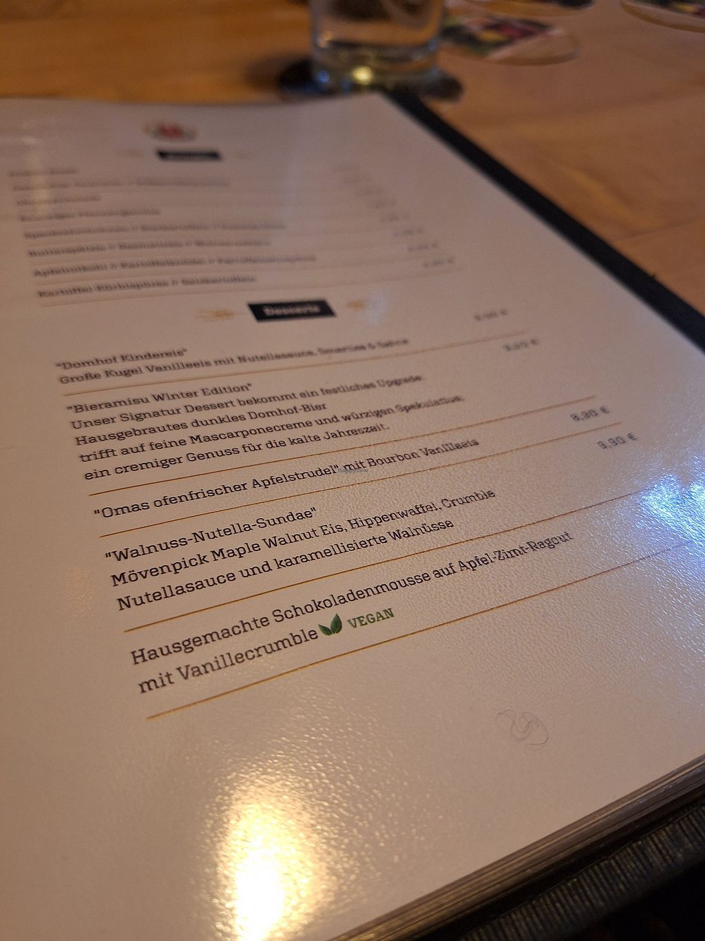 Ich war gestern mit Freunden seit längerer Zeit wieder beim Domhof essen. Momentan gibt es auf der Karte 4 vegane Gerichte