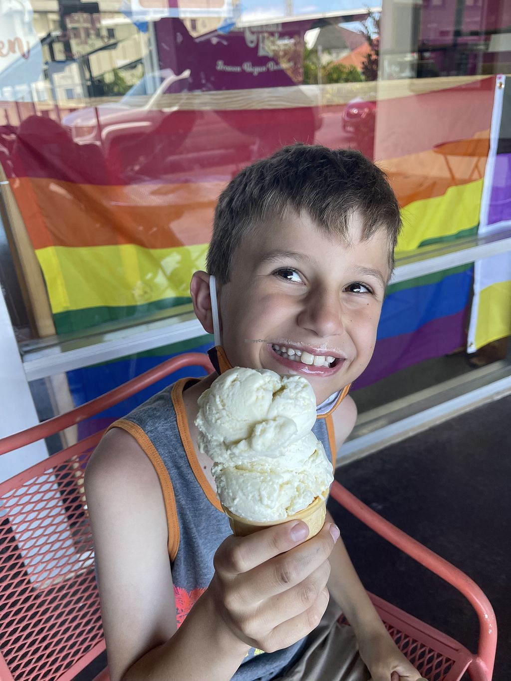 Super friendly owner, offered us free samples of all six flavors do we could decide. The flavors change daily and seem to bear no resemblance to the signs on the wall 😊. The "ice cream" was tasty, nice to have a treat we could enjoy on a warm afternoon. I had the coconut and my husband had the cinnamon.