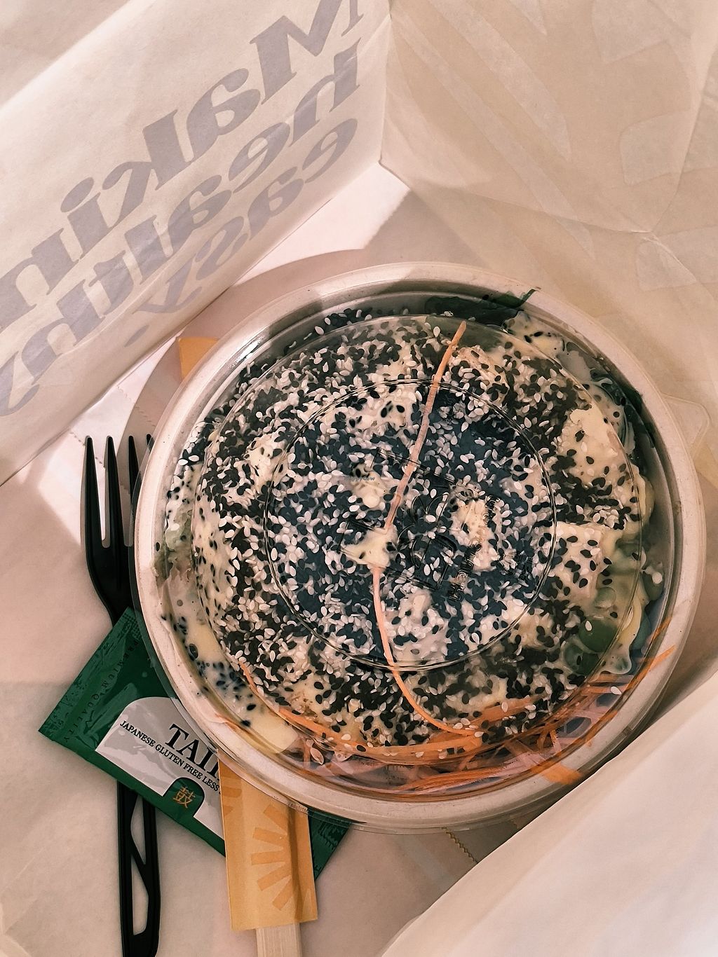 tried hawaiian poke bowl for the first time and it was honestly amazing. someone in the reviews said there are two vegan options but i could only find one. still, it was super tasty and filling. i picked quinoa as the base, with tofu, carrot, seaweed, green beans, avocado and extra mango sauce.