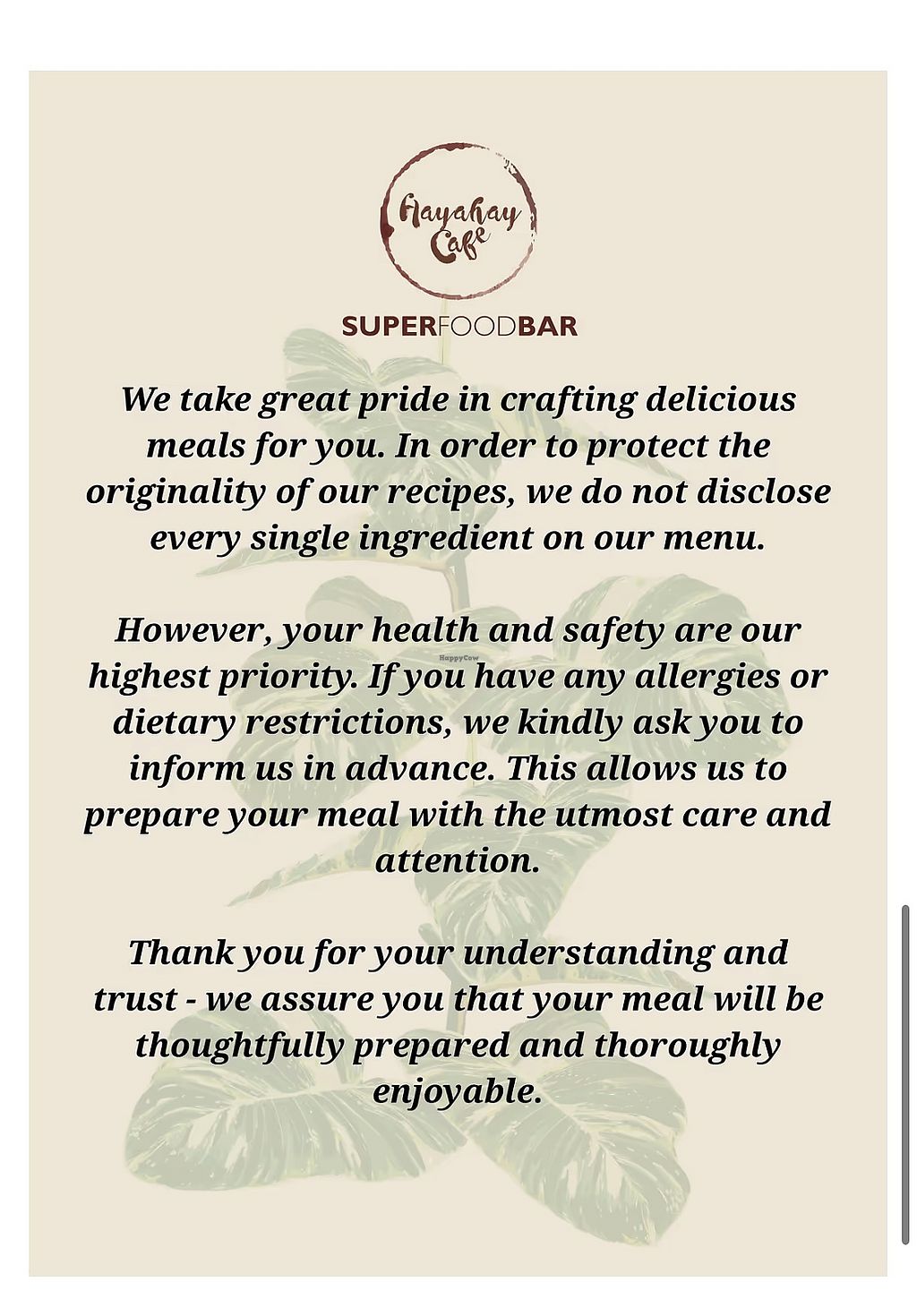 Cons: Feel like they must serve meat to appease masses